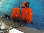 - Aufentern auf einen großen rettenden Frachter…Um sogleich wieder 5m runterzuspringen und währenddessen die Weste auszulösen