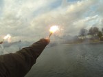 - Auch die Bedienung von Handfackeln wurde geübt (Man beachte den rot glühenden Abbrand, üben ist also auch nötig 😉 )