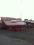 …und das gleich in doppelter Hinsicht. Zum Einen hat die Werft mir die Karre am letzten Freitag zum in Stimmung kommen vorsorglich schon mal in Sichtweite des Krans gelegt, zum Anderen steht eben jener Krantermin morgen an. Die Winterzeit geht also zu Ende. Es war dieses Jahr viel Arbeit, vor allem wegen der Vorbereitung des Sommertörns, und die übliche Mischung beim Handwerken aus Erfolgserlebnissen, Frustration und wilden Flüchen. Am Ende hat aber alles geklappt, und ich konnte die letzten Arbeiten heute bei herrlichem Frühlingswetter abschließen. Den neuen Propeller polieren, hier und da ein letzter Klecks Lack, die Halterung für die Rettungsinsel montiert, und nicht zuletzt die Kajüte ausräumen, auf Hochglanz polieren, und am Ende alles an Ausrüstung wieder rein. Da war das Bier am Abend „An Bord“ echt verdient. Hat sich fast schon angefühlt wie auf dem Wasser! 🙂