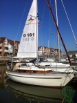 - Munteres Ausprobieren und montieren in der City Marina. Hier probier ich grad die Einleinenreffs aus
