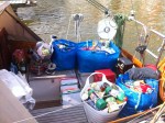 Zuerst mal muss ich mich dafür entschuldigen, dass ich in den letzten Tagen nichts von mir habe hören lassen, aber ich hatte wirklich keine freie Minute. So viele Kleinigkeiten wollten nicht vergessen werden, noch eben „mal schnell“ erledigt werden, und einige Abschiedstreffen standen auch noch an. Nun aber ist die Nonsuch endlich bereit für die große Reise. Jetzt liegt die Nonsuch 5 cm tiefer, alles nötige ist besorgt, alles ist eingeräumt – was allein schon mal gut 2 Tage in Anspruch genommen hat -, alle Arztbesuche erledigt (Aua!!!), Alle Verwandte und Freunde verabschiedet. Hoffentlich habe ich auch an alles gedacht, auch wenn ich eigentlich damit rechne, dass mir spätestens in der Kanalschleuse Brunsbüttel etwas irre Wichtiges einfällt das ich vergessen habe (Bei mir vorzugsweise Ladegeräte).