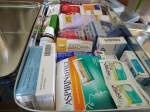 - Die frisch ausgestattete Bordapotheke. Hoffentlich hält mich der russische Zoll nicht für ´nen Junkie