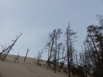 Gegen Mittag, nach 26h auf See komme ich dann in Leba an. Vor der Ansteuerung wird zwar immer gewarnt, sie gelingt bei dem leichten Wetter aber problemlos. Der Hafen ist wunderschön in einem Kiefernwald gelegen. Sofort fällt mit die Hilfsbereitschaft der Polen auf. Alles wird stehen und liegen gelassen um mir beim Festmachen zu helfen, die Gastflagge des Hafens so ungefähr noch vor´m Bezahlen gesetzt. Echt Klasse. Kaum angekommen, schwinge ich mich auch schon das erste Mail auf mein Rentnerfahrad um mal die Gegend auszukundschaften. Leider ist der Ort eine Geisterstadt. Eine Gastwirtschaft neben der nächsten, aber alles macht erst am 1. Mai auf. Leider war das im Hafen mit den Einrichtungen ähnlich… Also gehts auf zu Lebas Hauptattraktion: Die großen Dünen auf der Nehrung, die „Sahara Pommerns“. Selbst die großen Sylter Dünen sind nichts dagegen. Absolut atemberaubend. Vor allem fällt mir auf, wie still es in den Dünen ist. Man hört nicht mal den Wind. Genau wie schon auf Christiansø freue ich mich, dass ich schon so früh im Jahr unterwegs bin. Ich glaube beide Orte verlieren ihren Reiz bei viel Andrang in der Hochsaison… Leider passiert das in dem Moment denkbar Schlimmste nach den Besuch der Dünen: Platter Reifen. Verdammt, die hatte ich doch extra vor der Abfahrt noch mal angeschaut. Unter wüsten Flüchen (gut, dass ich allein im Nationalpark bin 😉 ) und Gemaule laufe ich die 10km zum Hafen zurück. Das war also die Belohnung dafür, dass ich mich nach 26h auf See noch zu Sightseeing aufgerafft habe 🙂 . Wenigstens hat bei meiner Rückkehr in den Hafen das Hafenrestaurant auf einmal doch geöffnet.