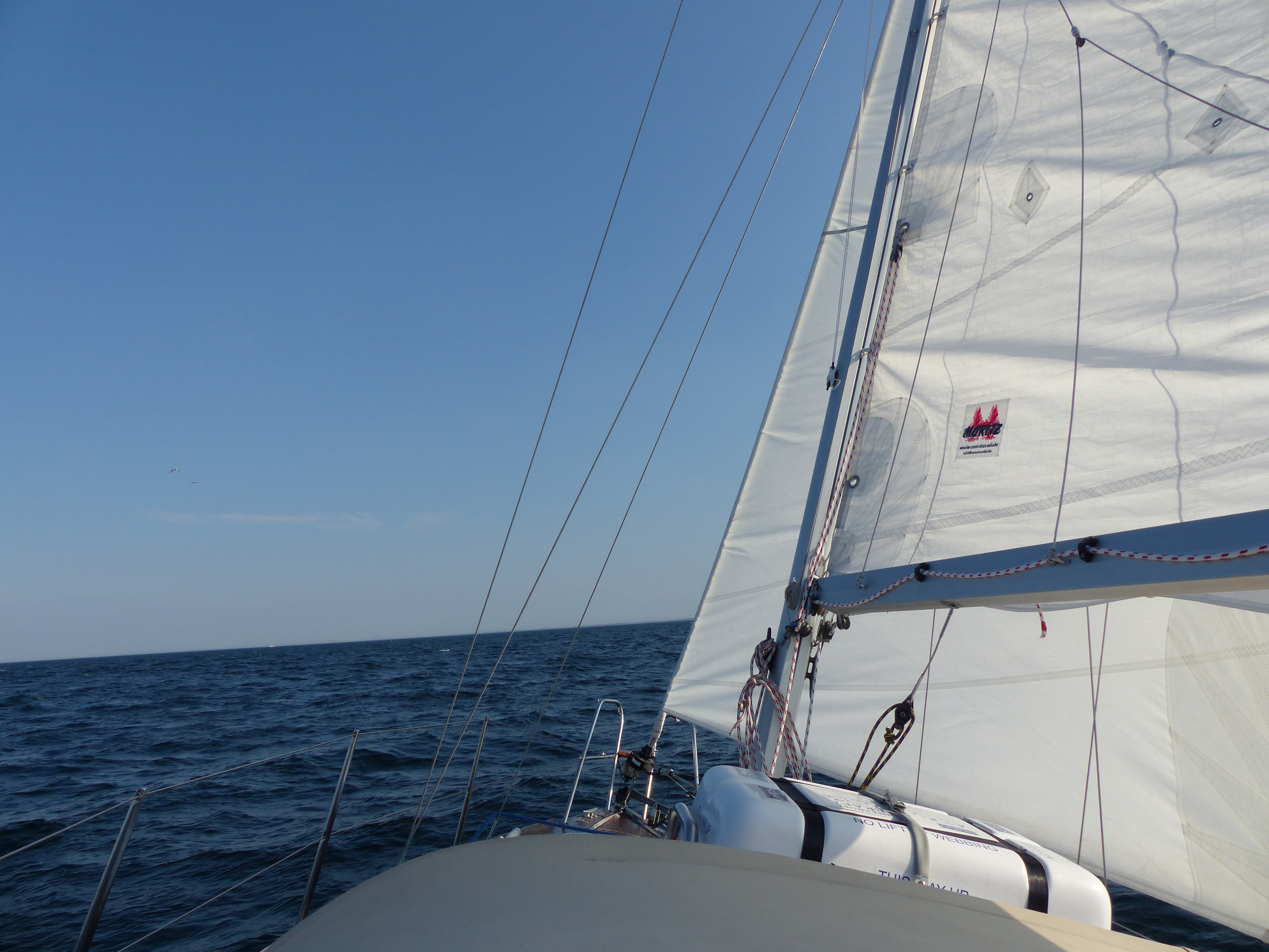 Jeder Ort muss verlassen werden. Die Schönen (leider) häufig viel zu schnell. Aber wenn der Wind erst aus West mit 3, Später dann Südwest 4 wehen soll, muss ich Christiansø verlassen. Bessere Bedingungen für den Schlag nach Polen kann man fast nicht haben. Kaum draußen schläft der Wind dann leider erstmal für die nächsten 3 Std. komplett ein. Na klasse… Ab dem Abend gab es dann aber als Ausgleich herrliches, wenn auch langsames Segeln und dazu einen herrlichen Sonnenuntergang. Die Nacht bleibt zum Glück ruhig. Leider aber auch extrem kalt, die Temperaturen gehen bis auf 1 Grad (!!) herunter. Am Anfang macht einem das noch nicht so wirklich etwas aus, aber Stunde um Stunde kriecht die Kälte dann tiefer in die Klammottenschichten. In den frühen Morgenstunden taute man dann nicht mal mehr in der Kajüte richtig auf. Umso mehr hab ich mich über die Sonnenstrahlen am Morgen gefreut.
