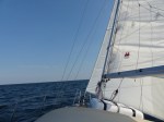 Eigentlich wollte ich jetzt mal einen Hafentag einlegen. Doch daraus wird leider nichts. Wieder einmal bin ich Getriebener des Wetters. Der Grund: am Samstag, also übermorgen, soll Ostwind aufziehen. Das heißt aufkreuzen. Das muss ich an der polnischen Küste nicht unbedingt haben, vor allem, da die Distanzen zu den nächsten Häfen eben schon 38sm, und dann noch einmal 25sm sind. Das wird gekreuzt dann mal eben locker zu 80-90 sm. Also gehts am nächsten Morgen schon weiter Richtung Wladyslawowo. Und was kommt vor dem Winddreher? Richtig! Flaute. Also mal wieder den Diesel bemühen…. Hab ich mich etwa gerade beschwert? – Die Strafe folgt umgehend. Der Wind dreht schon nachmittags auf Ost, die letzten 15sm (netto) werden aufgekreuzt. Wenigstens bei herrlichem Wetter. Normalerweise macht mit Kreuzen bei Bft. 4 und Sonne Spaß. Nonsuch ist zwar am Wind nicht die schnellste, aber sie geht sehr weich und trocken durch die Wellen. Heute bin ich aber irgendwie angespannt. Ich denke kurz nach, wandere mit den Augen die Küste ab, und komme schnell darauf woran es liegt: Ich habe echt Respekt vor dieser Küste. Seit 2 Tagen nun fahre ich sie entlang. Sie ist schön anzuschauen, mit dem breiten Sandstreifen und dem unendlichen Kiefernwald dahinter. Auf der anderen Seite aber auch sehr eintönig. Und vor allem respekteinflößend. Es gibt sehr wenige Häfen, keine Einschnitte oder Buchten in denen man sich verkriechen könnte, und ich will hier wirklich nicht bei dem falschen Wetter unterwegs sein. Der Weg nach Wladyslawowo wird durch den auffrischenden Ostwind etwa 4 Std. länger. Ok, geschenkt. Aber was ist, wenn einen hier mal ein richtig blöder Wetterumschwung erwischt?