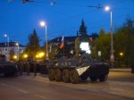 Abends habe ich dann auch mal die örtlichen Discos und Kneipen ausgekundschaftet. Vorher wartete allerdings noch ein Erlebnis der besonderen Art auf mich. Kein Verkehr auf der Straße, was ist denn hier los? Ich ging um die nächste Straßenecke auf den Lenin Prospekt und stieß auf mehrere Kompanien Soldaten und Panzer!! Was ist denn hier los??? Offenbar wurde hier eine Parade vorbereitet, und tatsächlich: Kurze Zeit später startete die Generalprobe der baltischen Flotte für die Parade zum Tag des Sieges am 9. Mai. Ca. 5000 Soldaten, Panzer, Raketenfahrzeuge, Lastwagen, alles dabei. Ich nehme alles zurück was ich gestern gesagt habe! 😉 Trotz der martialischen Anmutung war das echt ein imposant anzuschauendes Spektakel. Sowas habe ich vorher noch nie gesehen.