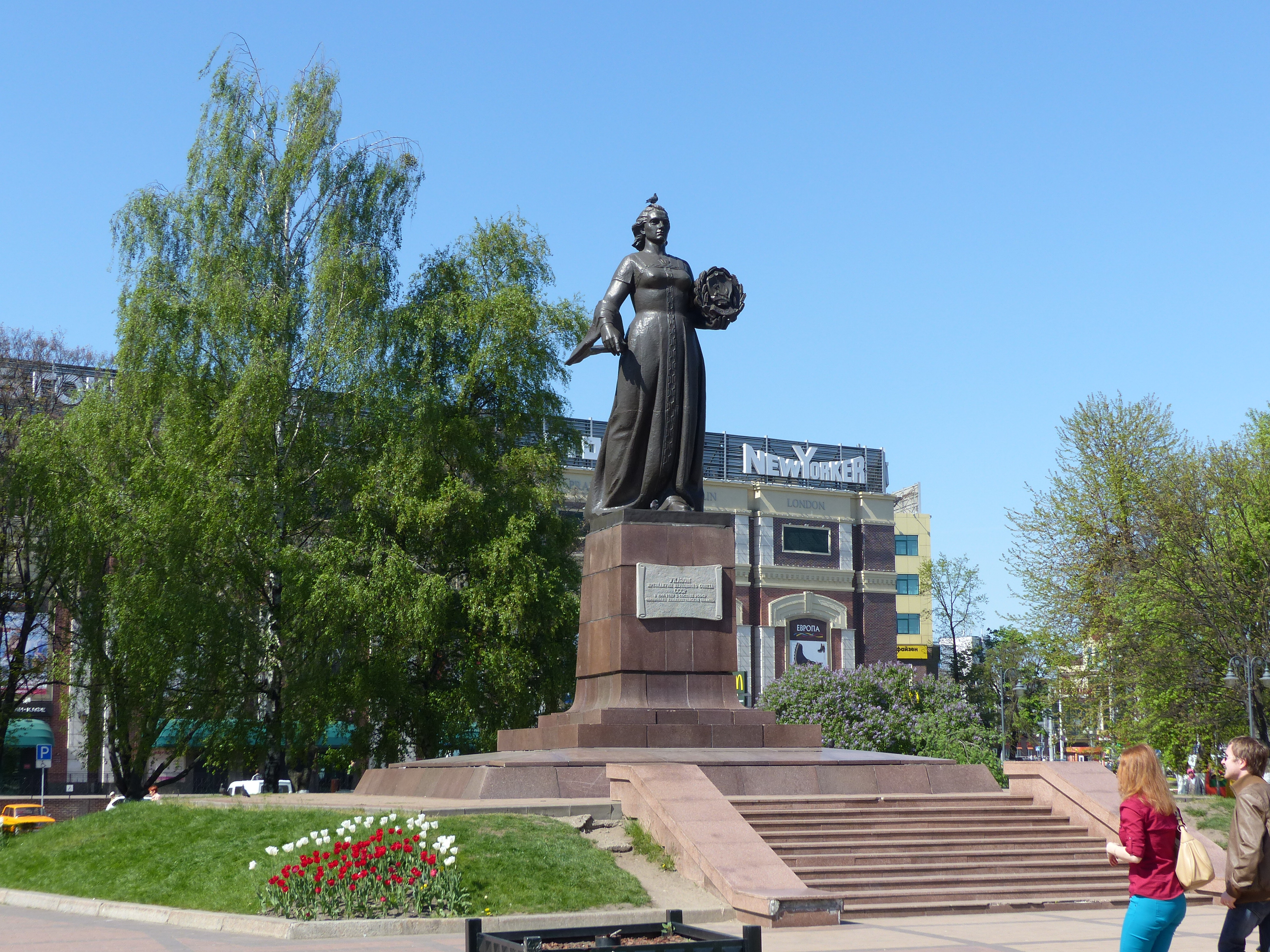 - Sinnbild für die Stadt. Mütterchen Russland Statue neben Konsumtempel.