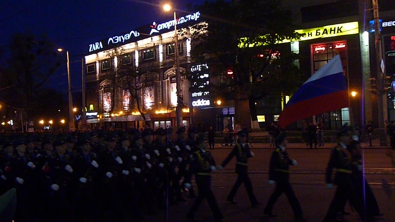 Abends habe ich dann auch mal die örtlichen Discos und Kneipen ausgekundschaftet. Vorher wartete allerdings noch ein Erlebnis der besonderen Art auf mich. Kein Verkehr auf der Straße, was ist denn hier los? Ich ging um die nächste Straßenecke auf den Lenin Prospekt und stieß auf mehrere Kompanien Soldaten und Panzer!! Was ist denn hier los??? Offenbar wurde hier eine Parade vorbereitet, und tatsächlich: Kurze Zeit später startete die Generalprobe der baltischen Flotte für die Parade zum Tag des Sieges am 9. Mai. Ca. 5000 Soldaten, Panzer, Raketenfahrzeuge, Lastwagen, alles dabei. Ich nehme alles zurück was ich gestern gesagt habe! 😉 Trotz der martialischen Anmutung war das echt ein imposant anzuschauendes Spektakel. Sowas habe ich vorher noch nie gesehen.