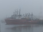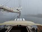 Ich wollte also weiter nach Norden, leider versprach die Wettervorhersage Regen. Und den gab es dann den ganzen Tag auch. Wenigstens passte aber der Wind. Ich hab also die Selbststeueranlage eingestellt und mich unter Deck zum Lesen verzogen. Alle 10 Min. mal ein Blick über die Sprayhood, wenigstens ist nichts los und ich komm voran. Am Ende des Tages bemerke ich leider noch, dass sich beim Segeln vor dem Wind zwischen Baum und Want ein kleiner Riss in mein schönes Großsegel gescheuert hat. Hätte nicht gedacht, dass selbst Hydranet hier so empfindlich ist. 😦 Kurz vor Liepaja hört der Regen dann endlich auf. Das finde ich toll. Nicht so toll wiederum finde ich, dass dazu paradoxerweise wieder mal dicker Nebel aufzieht. Ich lege kurz die Optionen auf den Tisch, und entscheide wegen des ruhigen Wetters und der guten Erfahrungen vor Bornholm und Schleimünde, ein Anlaufen zu probieren. Klappt auch alles, das mal vorweggenommen. Die Molenköpfe bekomme ich wieder erst zu Gesicht, als ich schon fast dazwischen stehe.  Im Revierfunk kommt ein Funkspruch an: Ein deutscher Frachter fragt nach den Sichtverhältnissen im Hafen. „visibility in Liepaja 1 cable (182m), maybe two, but not more“ wird ihm beschieden. Der Kollege entscheidet sich dazu, lieber auf der Reede vor dem Hafen zu ankern. Und ich bin grad durch die Molenköpfe durch und halte mich selbst für ein wenig bescheuert. Aber naja, ich bin ja auch kleiner 😉 .