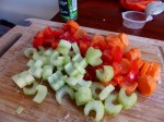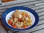 So, jetzt gehts in dieser Kategorie auch mal endlich weiter. Heute möchte ich kein besonders anspruchsvolles, aber sehr schnelles und einfaches Gericht für den Bordgebrauch vorstellen. Eine ganz schnell zubereitete Fleisch-Gemüspfanne. Ich hab oft das Problem, das an Bord noch so einige Reste an Gemüse und/oder Fleisch rumliegen, meine Fantasie nach einem langen Schlag aber nicht mehr ausreicht um mir ein passendes Rezept dafür vor Augen zu führen. Und hier kommt eben jene Pfanne ins Spiel. Der Clou darin liegt eben auch darin, dass bis auf wenige Grundzutaten alles austauschbar ist und man nur 1 Pfanne braucht. Ich habe mich hier für eine Kombination aus Schweinefleisch mit Sellerie, Tomaten, Paprika und Möhren entschieden. Ich hab auch noch einige andere Kombinationen schon mal ausgetestet, eurer Fantasie sind aber keine Grenzen gesetzt, Schmeisst einfach alles rein was die Schapps so hergeben. Vielleicht trägt dieses Rezept ja auf dem ein oder anderen Männertörn zur Resteverwertung bei. 😉
