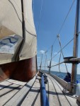 Nach dem Erholungstag in Lohusalu ging es nun weiter nach Tallinn. Endlich konnte über weite Strecken gesegelt werden. Die Fahrt in die Tallinner Bucht war echt spannend, auch echte Frachter waren hier wieder unterwegs, und ich bekam einen ersten Eindruck von den Helsinki-Tallinn Schnellfähren. Für die erste Nacht ging es auf Empfehlung von Timo in den Kalev Yachtclub im hinteren Teil des alten Olympiahafens. Der Hafenmeister hier, genannt „Tigerhead“, ist unter finnischen und estnischen Seglern eine ähnliche Legende wie Oskar in Kuressaare, ein Hafenmeister der nur für sein kleines Reich zu leben scheint.