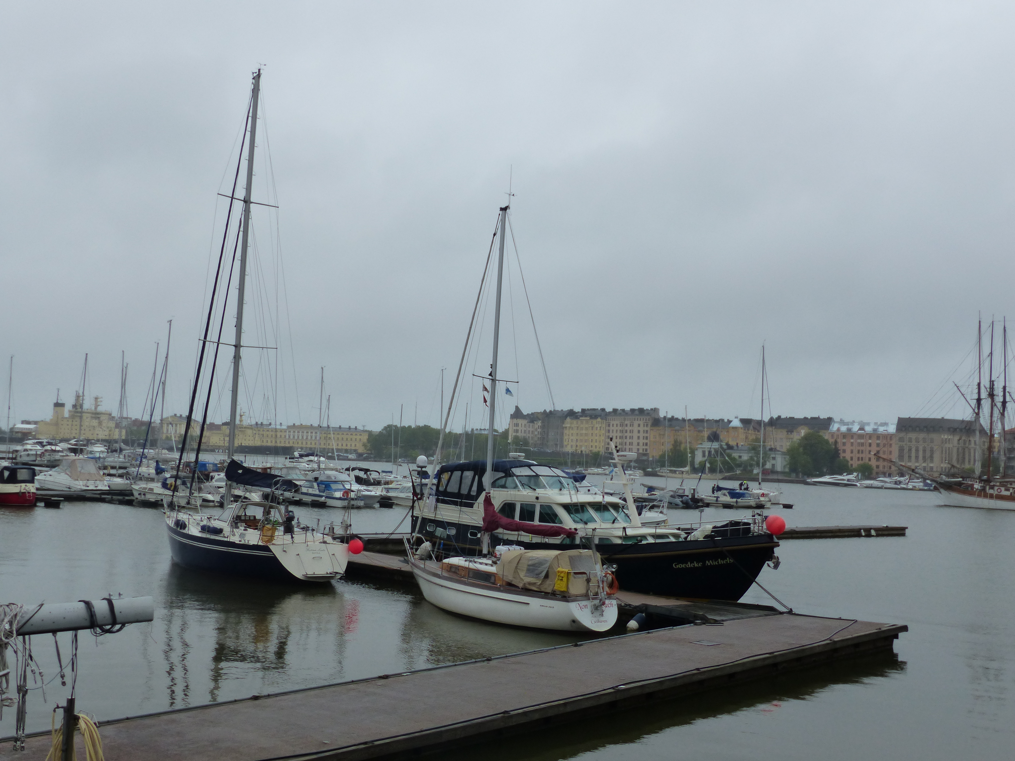 Suomenlinna war ja quasi nur das Warmup für Helsinki. Also auf gehts! Der kurze Weg nach Helsinki war bereits von ständigen Regenschauern und starkem Ostwind begleitet. Dazu waren die Temperaturen über Nacht auf ca. 6 Grad gefallen. Nach dem Sommer der letzten Woche war das anfangs schwer erträglich. Das Wetter hielt sich dann übrigens auch fast über den gesamten Helsinki Besuch. Ich mache auf vielfachen Tip im Motorbootclub HMVK fest. der liegt tatsächlich mitten in der Stadt, direkt gegenüber der finnischen Eisbrecherflotte. Wenn die riesigen Dinger hier Sommerurlaub machen, kann es ja sooo schlecht nicht sein… 😉 Nach Aussage von Timo ist das auch der einzig bezahlbare Hafen in Zentrumsnähe. Der offizielle Gästehafen soll mittlerweile Preise um die 50€ pro Nacht aufrufen, liegt aber nur einen Steinwurf näher an der Stadt…