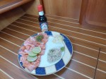 Am Sonntag geht es dann bei besserem Wetter weiter in Richtung Haapasaari  zwischen den Schären hindurch. Schon komisch, so wahnsinnig schön die Landschaft hier auch ist, nach einigen Tagen verliert man den Blick und auch ein wenig von der Begeisterung  weil diese Schönheit einfach normal geworden ist. So kann ich aber den Vorteil der Generation Digital Natives ausspielen und Kurt ein wenig in seine eigene Bordelektrik einweisen.  😉 Wir optimieren so dies und das. Ich freue mich, dass meine Mitfahrt so auch für meine Gastgeber einen Vorteil hat. Währenddessen versorgt uns Kurts Standesamtszugewiesene, die ihre Rolle an Bord übrigens selbst am liebsten als „Kaltmamsell“ beschreibt, mit einem herrlichen Lachssashimi. So ein Luxus als Bordverpflegung bei schönstem Wetter und Kurs Russland…. Die Stimmung könnte nicht besser sein. Am frühen Abend gelangen wir nach Haapasaari. Die Insel ist einer der letzten Außenposten der EU. Abgesehen von dem kleinen Zollstützpunkt herrschen hier Stille und Idylle. Obwohl hier ein kleiner Stützpunkt der Offiziellen angesiedelt ist, müssen diese erst per Boot aus dem nahegelegenen Santio herkommen. Die Ausklarierung erfolgt schnell und unkompliziert. Nach einem kleinen Abendessen und Inselerkundung hauen wir uns noch für einige Stunden aufs Ohr, bevor wir gegen 2300 ablegen. Früher ging nicht, da Kurts Visum erst ab dem 09.06 gültig ist. Erst um 2230 fällt uns aber auf, dass wir schon eine Stunde hätten unterwegs sein können, St. Petersburg liegt ja in einer anderen Zeitzone….