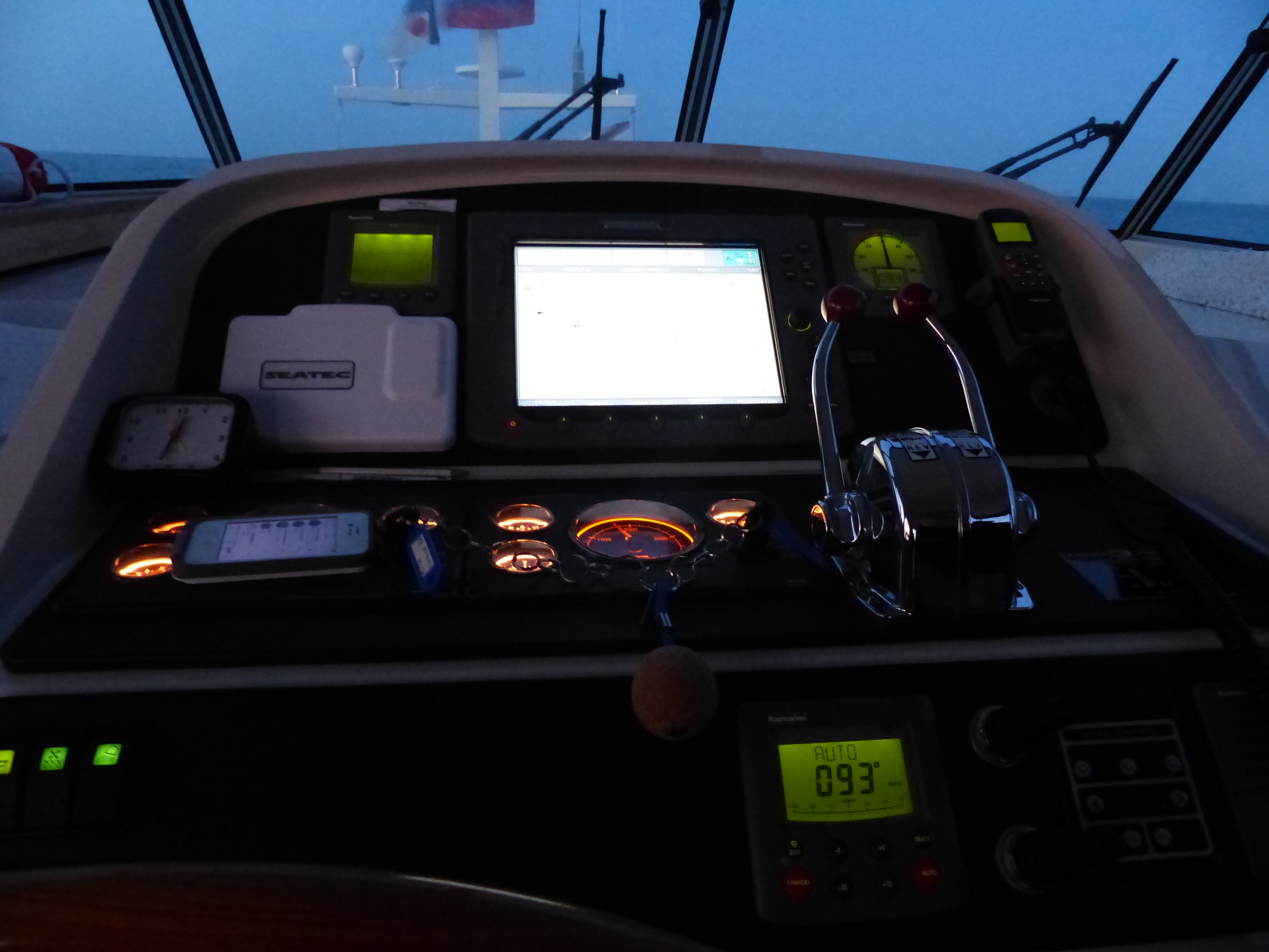 Die Fahrt für die 110NM nach St. Petersburg beginnt ruhig. Kurt uns ich genießen die Nachtfahrt , die eigentlich gar keine ist, da es nie so dunkel wird, dass man ohne Licht nicht mehr lesen könnte, und quatschen so über dies und das. Kurz nach dem Überschreiten der Grenze meldet sich die Revierzentrale bei uns, und geleitet uns mit der selben Aufmerksamkeit wie für alle großen Schiffe bis nach Kronshtadt, der St. Petersburg vorgelagerten Insel. Naja, die Goedeke Michels ist halt doch etwas größer. Diese Nachtfahrt gefällt mir, so ein großes MoBo hat echt auch Vorteile: Als es uns gegen 3 Uhr etwas zu kühl wird, ziehen wir uns einfach an den Innensteuerstand zurück. Ein Gefühl wie bei den Profis. Ich genieße diese Erfahrungen sehr, aber trotzdem fehlt mir manchmal das Geräusch des vorbeiziehenden Wassers, im wesentlich näher am Wasser gelegenen Cockpit der Nonsuch.
