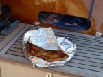 Gut ausgeschlafen geht es los, entlang der Küste. Ich nehme die ersten Stunden noch den letzten einschlafenden Wind mit. Der Tag vergeht ohne besondere Ereignisse. Ich lese, lausche Hörbüchern, geniesse es einfach nach der kurzen Zwangspause wieder draußen zu sein. Auch ist dies der erste Schlag seit dem Erreichen von Helsinki auf offenem Wasser. Gegen Abend lege ich einen Tankstopp in Reposaari ein. Welch glücklicher Zufall, dass die Tanke dort auch Pizza verkauft. Jeder Student weiss um die Vorzüge kalter Pizza, und auch die vor mir liegende Nacht wird durch die Reststücke des Abendessens echt aufgeheitert. Wobei, von Nacht kann man eigentlich nicht wirklich sprechen. Abgesehen von den Positionslampen für einige Stunden bleiben alle anderen Leuchtmittel ausgeschaltet. Sogar gelesen werden kann ohne zusätzliches Licht. Meine kleine Petroleumlampe dient dann auch nur ein wenig der Wärme, denn bis zu 5 Grad kalt, wird es trotz des ewigen Lichts immer noch. Die Nacht bleibt aber friedlich, ich bekomme kaum ein Schiff zu sehen, selbst in der gesamten Reichweite des AIS Empfangs tummeln sich nur 3 Frachter, und so komme ich in den bekannten 20 min Häppchen zu einigem Schlaf.