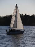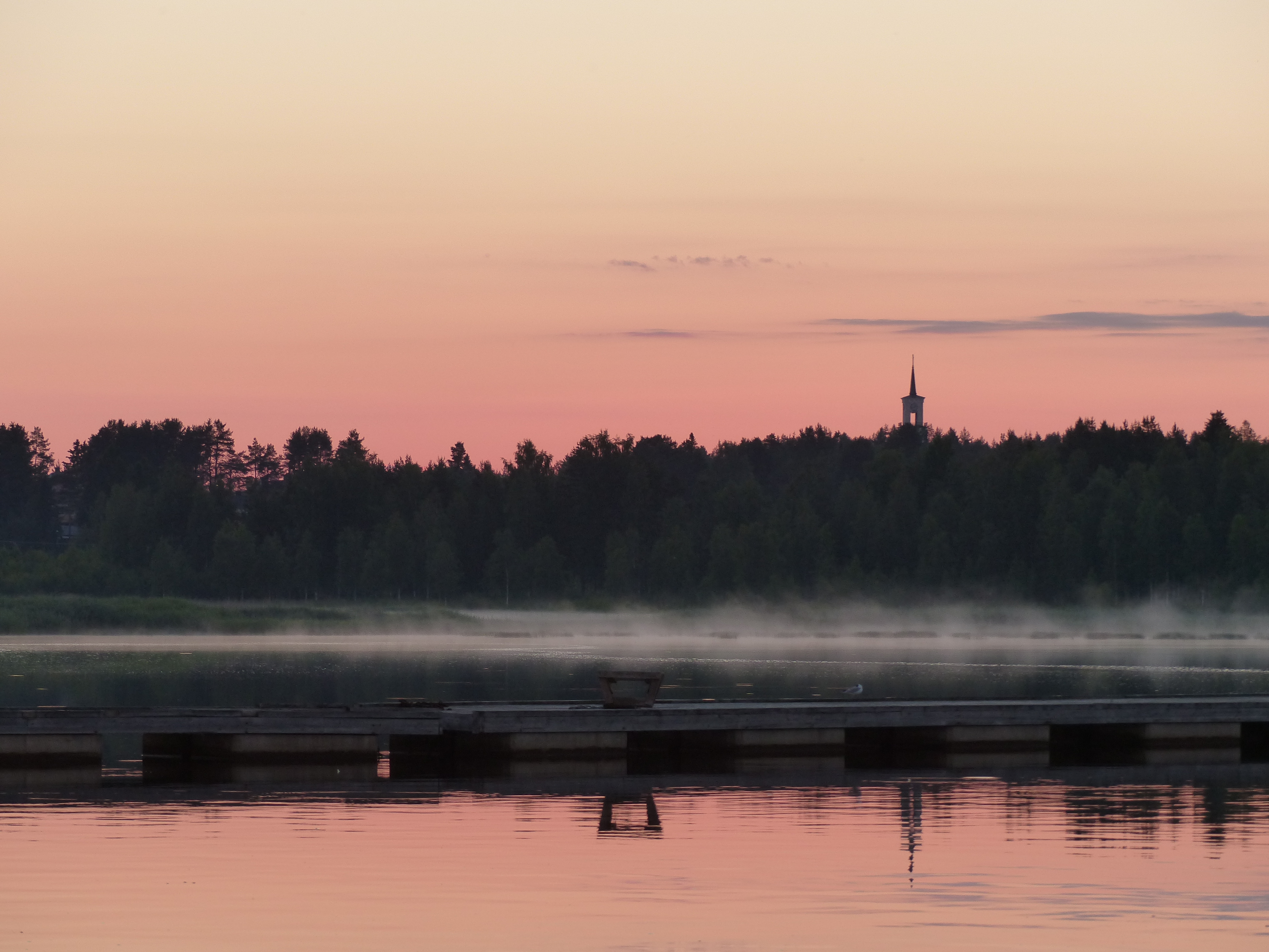 Der Hafen selbst wird oft ein wenig negativ dargestellt. Vergammelte Stege in wenig einladender Umgebung. Stimmt aber gar nicht. Da es nun schon spät geworden war, war meine Lust den Fjord wieder rauszufahren um noch eine nette Insel zu finden begrenzt. So blieben wir also hier, was sich als Glücksgriff beweisen sollte. Am Hafen selbst befindet sich zwar ein verlassenes Betonsilo, doch dahinter ist ein netter kleiner Campingplatz (Und wenn ich einen Campingplatz als nett bezeichne will das schon was heissen), der von einem älteren schwedischen Ehepaar während der Sommerferien betrieben wird. Hier wird der Hafen bezahlt, es gibt ein kleinen Kro, und hier erhält man auch das Zertifikat über das Erreichen des nördlichsten Punktes der Ostsee. Da die Suche nach anderen Fressbuden im Ort leider ungefähr so erfolgreich wie die Suche nach einem Kühlschrank in der Antarktis war, kehren wir hier ein, und essen typisch schwedisch: Gefrästes Rentier mit Kartoffelbrei und Preiselbeeren. Herrlich! Der Abend gerät dann besonders eindrucksvoll, denn zu dem mittlerweile schon fast gewöhnlichen Abendrot gesellt sich noch feiner Dunst über der nördlichsten Bucht der Ostsee. Wieder kommt dieses Mittelerde-Feeling wie schon in Haparanda auf. Man macht es mir wirklich leicht das Besondere an diesen Augenblicken zu erkennen. Auch auf die Nonsuch bin ich echt stolz. Das kleine Schiff hat mich hervorragend bis hier getragen. Das Wort Lagerkoller existiert eigentlich gar nicht. Es zeigt sich immer mehr, dass die Sirius 26 das perfekte Ostseeschiff ist.