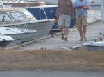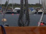 Endlich passte auch mal wieder über weite Strecken der Wind. Die Ankunft war dafür eher ernüchternd. Der Hafen liegt quasi mitten im Industriegebiet. Die Crew der „Palve“ war auch schon dort und winkte mich begeistert ran. Konnte ich in dem Moment irgendwie nicht nachvollziehen, erklärte sich aber recht schnell: Der Yachtclub hatte im Clubraum einen riesigen Fernseher!! Klasse, konnten wir uns so doch die Fahrt in die Stadt sparen. Am späten Nachmittag war der Gästesteg dann mit 5 deutschen Booten besiedelt. Könnte also ein ganz lustiger Abend werden. Die Zeit bis zum Anpfiff wurde mit den ersten Erfrischungsgetränken und Fachsimpeleien verbracht. Schließlich sind wir nicht nur alle Weltmeister sondern eben auch 80 Mio. Bundestrainer. Das ist so ein weiteres Feature von Fussball an Bord: Rudelgucken in Gemeinschaft mit dem halben Hafen. Wo gerade bei deutschen Seglern oft als erstes die Kuchenbude aufgebaut wird und man den ganzen Rest des Tages nichts mehr voneinander sieht, bringt Fussball immer mindestens 70% der Stegbevölkerung an einen Tisch. Zumindest im Ausland, wo nicht jeder per WLAN oder DVB-T (Warum braucht man das auf einem Boot??) unter der eigenen Kuchenbude guckt. 😉