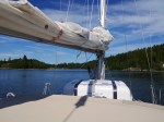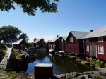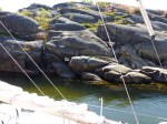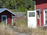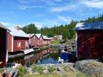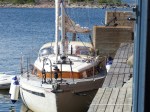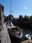 Es war Papas letzter Tag an Bord und Ziel war es, noch so viel von der Höga Kusten mitzunehmen wie möglich. Bei traumhaftem Wetter, guter Musik und einer leichten Brise ging es zunächst nach Mjälton. Mjälton wird ausschließlich von Naturhäfen und Ankerbuchten erschlossen. Wir wählten für unseren Mittagsstop die bekannteste Bucht im Osten. Kreisrund, mit nur einem kleinen Flaschenhals als Einfahrt und durchgehenden Tiefen zwischen 3 und 5 Metern erscheint sie wie eine Ankerbucht aus dem Lehrbuch. Wir drehen eine kleine über die Insel. Eigentlich war auch noch die Besteigung des Inselgipfels geplant, aber bei 30 Grad im Schatten die diesen Tag ebenfalls so gut werden ließen, nahmen wir davon dann doch lieber Abstand. Es ging weiter nach Marvikssgrunnar. Marviksgrunnar ist ein winzig kleines verlassenes Fischerdorf und war der Tip eines Freundes. Karten gibts vom Hafen keine. Und der führt nur so ungefähr noch 1,2m Wasser. Grosser Auftritt für Nonsuch´s Kielschwert also. So gelangten wir in das winzig kleine Hafenbecken, welches nicht einmal eine komplette Drehung erlaubt. Der Begriff „sich in einen Hafen einschieben“ bekommt hier eine ganz neue Bedeutung. Einige Schweden haben die ehemaligen Fischerhütten jetzt zu Sommerhäusertn umgebaut. Alles macht dennoch einen unglaublich verschlafenen Eindruck. Mehrere Stunden streunen wir durch das Dorf. Überall gibt es was zu entdecken.