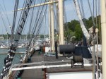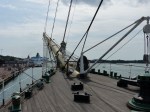 Die Räume der Mannschaft, das Hauptdeck, die Ladedecks, welche heute zahlreiche Vitrinen mit Gegenständen des Schiffsbetriebs beherbergen, all das hat mich sehr beeindruckt. Wer mal auf einem Großsegler mitgefahren ist wird aber verstehen, dass mich eine Tatsache ganz besonders beeindruckt hat. Das Schiff ist von Mariehamn auf die andere Seite der Welt nach Australien oder Chile gefahren. Und das mit gerade einmal 24 Mann Besatzung. Und davon nur 16 Decksleute. Zum Vergleich: Die moderne Dreimastbark Alexander von Humboldt fährt mit ca. 60 Mann Besatzung. Diese 24 Mann mussten dieses riesige Schiff und 4 Masten komplett allein bewältigen. Das macht gerade einmal 6 Mann pro Mast. Was für eine Arbeit das während der Segelmanöver, vor allem beim Brassen (Schiften der Rahen bei Halse und Wende) gewesen sein muss, kann ich mir sehr gut vorstellen. Und das Monate am Stück. Wahnsinn….