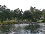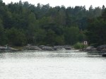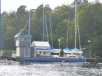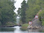 Es gibt bei Stockholm einen kleinen Sund in Richtung Süden der einem ca. 25NM durch das Hauptschärengebiet spart. Bei der aktuellen Verkehrslage dort eine ganz reizvolle Aussicht. Nach den paar Tagen in Stockholm geniesse ich es erstmal wieder auf dem Wasser zu sein. Schon komisch, dass ich mich als Stadtmensch hier doch einfach wohler fühle. Die Fahrt durch den Skurusund ist auch ganz nett. Überall gibt es was zu sehen. Zum Beispiel Jollenfähren für diejenigen, denen die Fahrt mit der Autofähre einfach zu langweilig ist. Oder Private Bootskräne zum Abparken an Land. Am Ende des Sundes soll dann ein recht schmales Stück kommen. Die DK-Seekarte schweigt sich da weitestgehend aus. Dunkelblaue leere und der einsame Vermerk „betonnt“. Naja wird schon schiefgehen. Es folgt tatsächlich ein extrem schmaler Kanal. Sich hier mit mehr als einem kleinen Tuckerboot zu begegnen wäre eher ungünstig. Aber der Kanal fasziniert mich irgendwie auch. Auf beiden Seiten liegen verschlafene Sommerhäuser und Gärten. Sogar ein Friedhof liegt im Wasser mitten im Wald. Und überall sitzen die Schweden ganz entspannt am Ufer, spielen mit den Kindern, oder Grillen. Die ganze Atmosphäre ist total relaxt und fröhlich. Mir fällt auf, dass ich mir genau so den Göta Kanal immer vorgestellt habe. Und so fällt dann auch endlich eine Entscheidung für den weiteren Weg. Dieser kleine Sund südlich von Stockholm, die Göta-Miniatur, hat mich überzeugt. Ich werde den Weg durch den Göta Kanal nehmen. An der Küste entlang gefahren bin ich ja schon ein paar Meilen in den letzten Monaten. Warum nicht etwas neues ausprobieren? P1020387 Glücklich über diesen definitiven Entschluss steuere ich eine Bucht in der Insel Agnö an. Ein Geheimtip von freundlichen Schweden im Wasahamn. Nur leider sind die Schweden im Weitererzählen von „Geheim“tips noch besser als die meisten deutschen Boote in der dänischen Südsee. Mindestens 20 Schiffe liegen hier schon vor Heckanker oder frei in der Bucht. Naja egal, irgendwo werd ich wohl noch reinpassen. Auf weiterfahren habe ich keine Lust. Der Anker hält. Das erste mal auf über 10m Wassertiefe. Nachts ziehen schwere Gewitter über uns weg, aber alles kein Problem. P1020401
