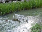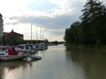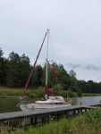 Die Schleuse öffnet sich, und ich schaue auf: Äcker. Mem liegt idyllisch zwischen einigen Häusern, Äckern und Wäldern. Irgendwo hinten verschwindet der Kanal. Ich überlege kurz hier auch gleich die erste Nacht zu verbringen, entscheide mich aber dann doch dafür nach Söderköping zu fahren. Am Freitag Abend ist dort sicher etwas mehr los als hier. Die ersten Meilen auf dem Kanal sind traumhaft. Bis Söderköping bin ich komplett allein. Es geht durch Wälder und Äcker. Direkt am Kanal stehen ein paar Kühe. Und es riecht nach Kuh. Ein witziges Erlebnis, bin ich doch immer noch auf meiner treuen „Nonsuch“ unterwegs. In den letzten Monaten habe ich manchmal über 2 Tage kein Land gesehen, und nun fahre ich direkt zwischen den Kühen durch. Selbst der leichte Regen kann meiner Laune nichts anhaben. Der Kanal hat mich sofort gepackt.