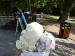 Tags drauf schlafe ich endlich mal wieder aus. Ich schlendere noch mal durch den Ort und versacke im bekanntesten Eiscafe Schwedens. Dem Smultonstrället. In Deutschland nehme ich gerne mal so 3 Kugeln. Das hätte ich hier mal lieber bleiben gelassen, denn Essen ist für die nächsten 12 Stunden danach eher nicht drin. Darauf erst mal ne Pause. „Stay another day“ meint Paul, doch ich möchte die Zeit bis der Kanal in den Herbstbetrieb übergeht nicht gleich am Anfang ma selben Ort verbringen, und mache mich mittags noch auf die Socken. Nicht ohne noch eine extra Teepause bei Paul einzulegen, da der Brückenwärter hinter dem Hafen erst mal Mittagspause macht. Wie war das noch mal? Der Kanal entschleunigt? Ich wundere mich selbst, den hier bringt mich irgendwie nix aus der Ruhe.