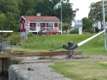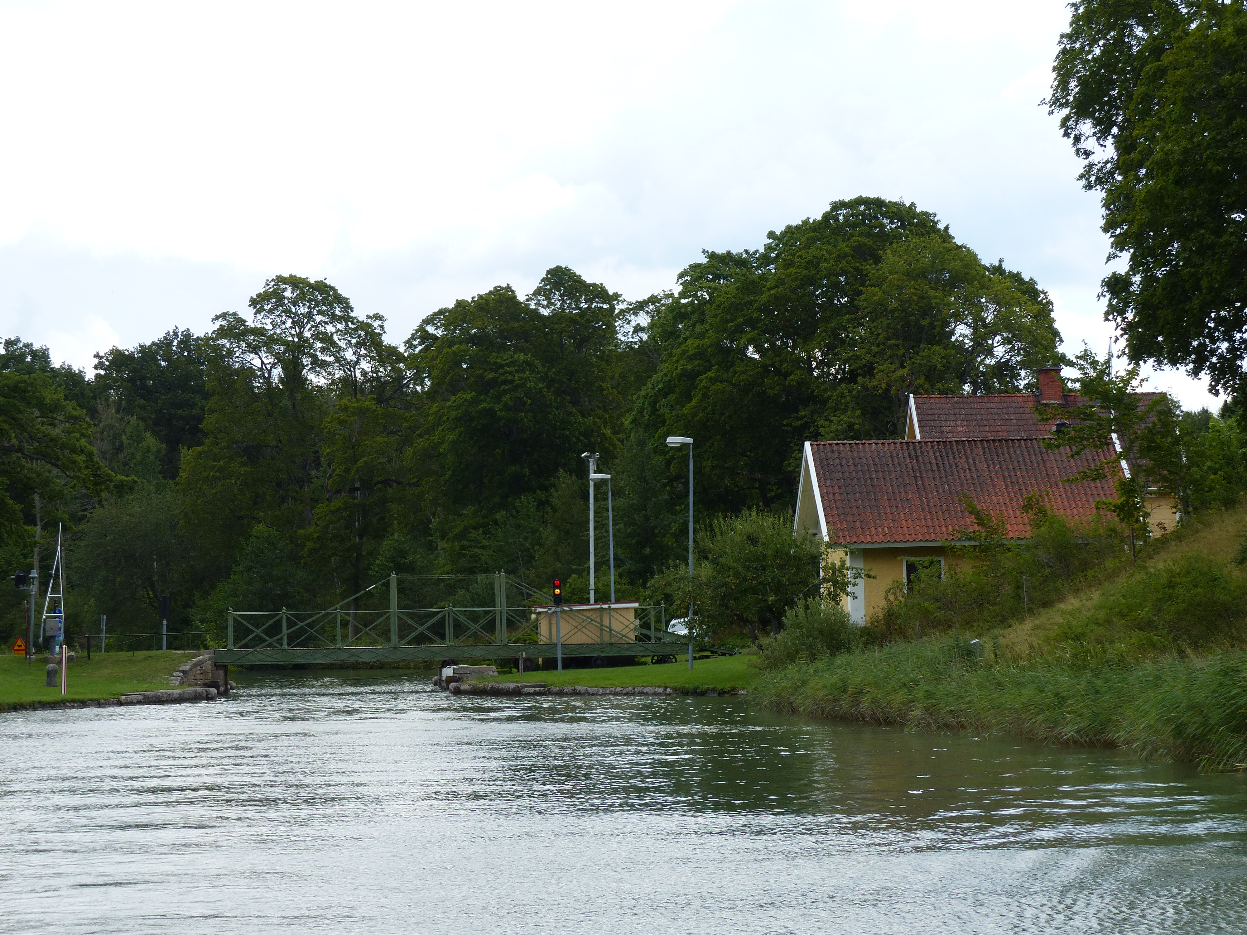 Irgendwann Mittags komme ich dann in Borensberg an und mache zur Mittagspause erstmal vor dem bekannten Göta Hotel fest. Der Himmel zieht sich zu, und so kehre ich dort einfach mal ein. Ein nettes MIttagessen, mal wieder mit Blick aufs Schiff ,folgt. Als ich das Hotel verlasse, ist der Himmel wieder frei. Eigentlich wollte ich heute ja nur nach Borensberg fahren, aber irgendwie habe ich nach einem kurzen Rundgang schon das Gefühl, alles gesehen zu haben. Laut Schleusenwärter wäre eigentlich noch Zeit weiter zu fahren. Also kurz mal in mich gehen…