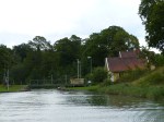 Tags drauf ist dann wieder „go west“ angesagt. Wieder geht es an Äckern, Schafherden, zahlreichen Schleusen und Brücken vorbei. Und so langsam komme ich dahinter, was den Kanal ausmacht. Anfangs habe ich die Passage zwar als Erlebnis, aber dennoch vor allem als Verkehrsweg gesehen. Das tut dem ganzen aber Unrecht. Die Schleusen, die vielen kleinen Brücken über Feldwege, die freundlichen Mädels, das ganze Ambiente wirkt eher wie im Miniaturwunderland oder einem maritimen Erlebnispark. So wie ´ne Bootsfahrt im Heidepark oder so ähnlich. Nur in spannend… Und abgesehen von den paar Passagierfrachtern sind die Segler hier der Hauptverkehr. Das merkt man auch daran, dass schon bei Anfahrt die meisten Brücken oder Schleusen sich öffnen. Oft muss man vor Brücken nicht mal auskuppeln. So will ich auf dem NOK auch mal behandelt werden. 😉