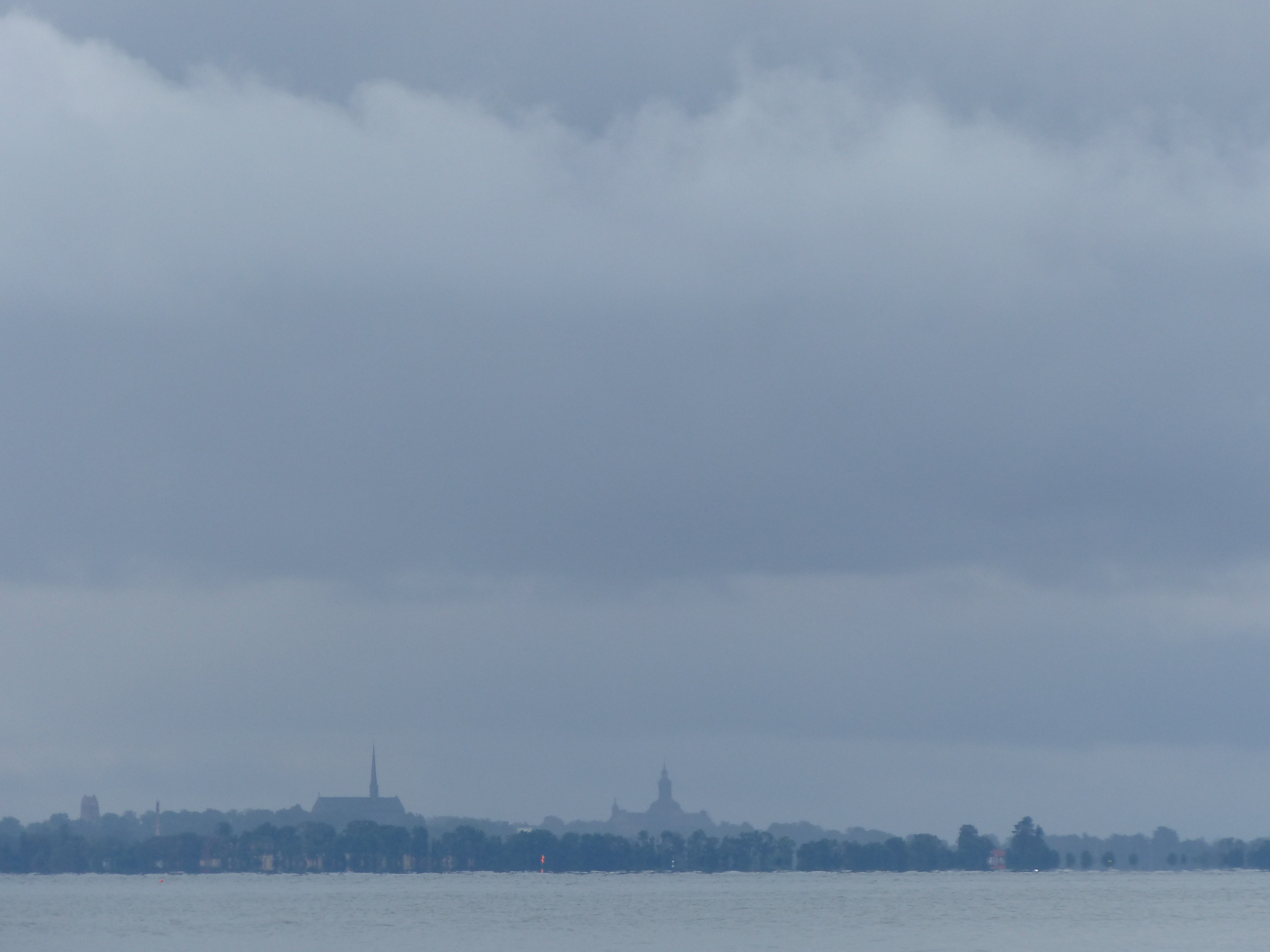 Vielleicht soll ich Motala gar nicht verlassen? Heute jedenfalls dann der zweite Versuch über den Vättern. Dieses Mal bei Windstille. Bereits am Morgen ziehen einige gewaltige Schauer vorbei. Mich lassen sie aber zum Glück in Ruhe und ich kann ungestört nach Karlsborg tuckern. Dort muss man angeblich umbedingt die Festung gesehen haben, also raus mit dem Rentner-Bike und los.