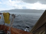 Aus solchen Plänen werde ich ganz schnell wieder in die Realität zurückgebracht. Wir beschliessen, noch gemeinsam nach Forsvik zu fahren, da der dortige Liegeplatz etwas idyllischer sein soll. Viele Tage bleiben nicht mehr um den Kanal im eigenen Tempo zu genießen bevor er am 19 August in den Herbstbetrieb geht. Praktisch also so halb geschlossen ist. Und da wollen die wenigen verbliebenen Tage gut genutzt werden. Die Strecke dorthin ist nur 4SM lang, aber auch die können ganz schön lang werden. Auf dem Weg nach Forsvik passiert es dann nämlich: Der Sommer ist mit einem Schlag vorbei. Unbemerkt zieht über die Berge ein bestialistes Gewitter heran, das uns mit voller Wucht erwischt. So einen Platzregen habe ich mein Leben noch nicht erlebt. Und dazu noch Hagel. Hagel Mitte August, bin ich hier im falschen Film oder was? Der Regen lässt bis in die Abendstunden kein Stück nach. Und so komme ich dann auch in den Genuss einer Tätigkeit, die ich seit den Zeiten auf den Jugendbooten der SVC fast schon vergessen hatte: Seekarten trocken föhnen. Die Temperaturen sind um gute 10 Grad seit dem Nachmittag gefallen. Noch machen wir Witze darüber….