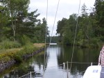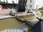 Am folgenden Tag sind die Schauer wenigstens zeitweise mal von der Sonne unterbrochen. Was allerdings nur heute so sein soll. Ich bringe also den gesamten Rest des Kanals, und damit bis auf Tåtorp alle Bergabschleusen, an einem Tag hinter mich. Was soll ich den letzten Tag der Sommeröffnungszeiten im Regen da durch tuckern, da macht das Schauen ja eh keinen Spaß… Bergab ist entgegen dem verbreiteten Glauben schwieriger zu bewerkstelligen. Zumindest alleine. Den hier helfen die Schleusenmäuse meistens nicht. Ich muss selbst übersteigen und die Leinen durch die Ringe legen. Das führt vereinzelt zu lustig-akrobatischen Szenen, denn das Schiff bewegt sich ja meistens weiter. Es geht vorbei an den kleinen Ortschaften Töreboda und Norrkvarn, wo ich eine Mittagspause einlege um mir das Miniaturmodell des Kanals dort anzuschauen. Irgendwie ist das schon so halb im Winterschlaf, und Betrieb ist hier auf einer kleinen Ferienanlage auch nicht mehr. Püntklich zum Landgang fängt es auch wieder zu regnen an. Die ganze Stimmung ist wirklich deprimierend. Auch wenn ich den Grund dieser Tage irgendwie verstehe, das Ende der schwedischen Sommerferien, mit dem hier wirklich jegliche Aktivität eingestellt wird, ist mir irgendwie suspekt. Auf einmal ist alles verlassen. Dieser Tage wird das besonders deutlich.