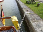 - Festmachen beim Bergab Schleusen: Eine Leine Achtern auf Slip.