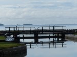 Zum frühen Abend hin schaut dann auch die Sonne wieder raus. Der Wind ist eingeschlafen (Toll, hätte er das nicht heute morgen in der Schleuse schon tun könnnen?). Das Regenwasser tropft von den vielen Bäumen herunter. Und es ist unglaublich still geworden. Nur vereinzelt rumpelt noch mal ein Auto über die nahe Brücke und ein Fischer tuckert mit seinem Einzylinder auf den Vänernsee raus. Auch ich drehe noch eine Runde durch das Hafen- und Schleusengelände. Punkt 1800 wird dann das Kanalbüro abgesperrt. Zum letzten Mal dieses Jahr. Ab morgen kann man den Kanal nur noch im festgelegten Konvoi passieren. Als Freizeitpark hat er dann ausgedient… Diese Szenerie stimmt versöhnlich. Es ist der perfekte Abschied. Die Saison ist vorbei, und der Kanal kommt zur Ruhe. Nur das Wasser plätschert wie immer durch die Schleusentore, die sich bis zum Eintreffen des ersten Konvois in 3 Tagen erstmal nicht bewegen werden. Schöner kann der Abschied vom Kanal wirklich nicht sein.