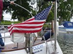 In der wirklich allerallerletzten Schleuse, die wie auf einem Damm gelegen ist, weht der Südwind dann stramm mit 6 Bft von der Seite. Da passiert es dann natürlich doch noch, dass ich mir meinen Ehrenkratzer am Rumpf abhole. Grummel…. Naja, abhaken, ist doch eigentlich ganz gut gelaufen. Die Passage in den Außenhafen gelingt trocken, doch schon beim Festmachen rollt der nächste Schauer an. Also schnell bei Bier und guten Gesprächen verkriechen. Seit 3 Tagen ist das Wetter jetzt schon so. Sollte der Sommer also wirklich unwiederbringlich vorbei sein? So ganz kann das im Hafen noch keiner glauben.