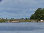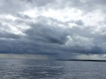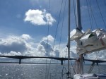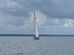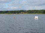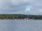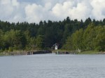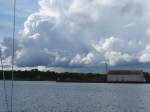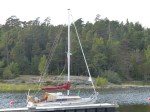 Aber auch der schönste Hafen der Reise muss irgendwann verlassen werden. Heute geht es mal total raus in Blaue, denn sowohl meine als auch Henriks Karten sagen nicht wirklich viel über das Westufer des Vänern aus. Nur das kleine Bildchen im schwedischen Gästehafenverzeichnis zeigt, dass es dort einen Platz gibt, der ganz besonders nett aussieht. Bei leichtem Wind machen wir uns also auf den Weg. Irgendwas ist schon seit Sjötorp aber anders beim Segeln. Heute, wo ich kaum auf 4kn Geschwindigkeit komme, merke ich auch was es ist: Ich hab keine Termine mehr. Wie schon mal erwähnt, war das Saisonende des Göta Kanals ja das letzte fixe Datum. Ab jetzt trödel ich nur noch vor mich hin. Weit ist es ja auch nicht mehr bis in heimatliche Gewässer…. Als der Wind dann irgendwann mal zunimmt, hat er gleich ein kleines Gewitter im Gepäck. Super, den Hafen schon in SIchtweite, alle anderen schon trocken am Kai, und um mich herum krachts. Der begossene Pudel. Das gute an Gewitterschauern: Sie gehen vorüber.