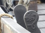 Irgendwann taucht dann ein riesiger weißer Fleck an der Küstenlinie auf. Das Schloss von Läcko. Es trohnt eindrucksvoll an der Einfahrt des Schärengartens. Schären gibt es viele, aber das Schloss hier nur einmal. Zwar stand im Revierführer was vom „eindrucksvollen Schloss“, aber das tut es sinngemäß auch oft bei jedem vorzeitlichen Reihenhaus. Aber das ist hier tatsächlich mal was besonderes. Selbst das Schloss von Vadstena stellt es in den Schatten, wenn man hier auch nicht direkt im Burggraben anlegen kann. Aber zumindest direkt davor… Auch wenn mein Kulturbedürfnis für diesen Sommer eigentlich schon mehr als gedeckt ist, schaue ich mir das Schloss auch noch an. Spätestens seit St. Petersburg mit den Massen an Gold und Kunst kann mich da eh nix mehr wirklich beeindrucken, doch die Ausstellung ist wirklich sehenswert. Das Innere wurde seit dem 17. Jhd. fast nicht verändert und es wird sich auf das Leben in einem solchen Schloss konzentriert. Und das ist wirklich mal ein Unterschied zu vielen anderen Gemäuern, wo man hauptsächlich mit Namen und Jahreszahlen aus der individuellen Geschichte bombardiert wird.