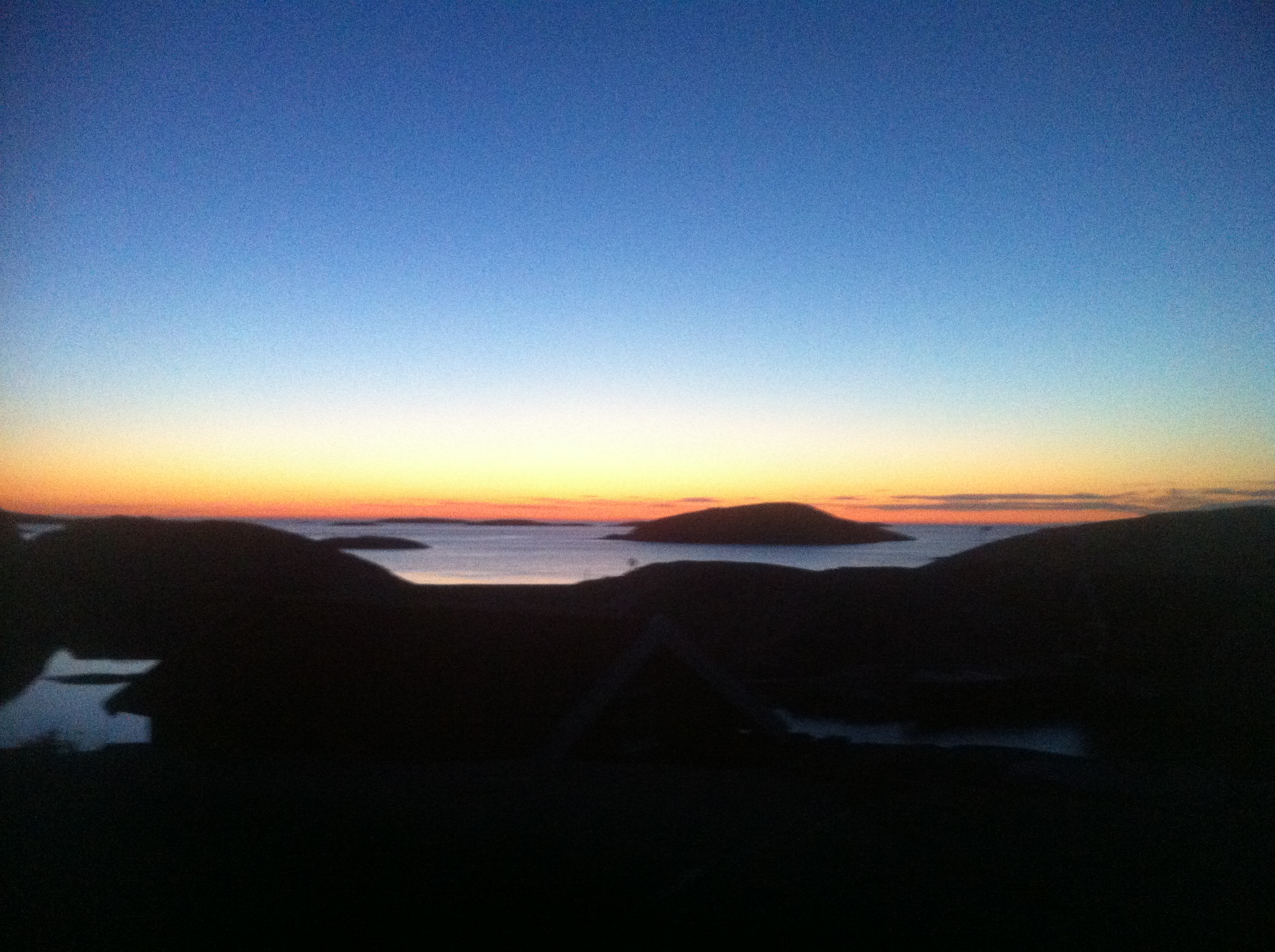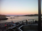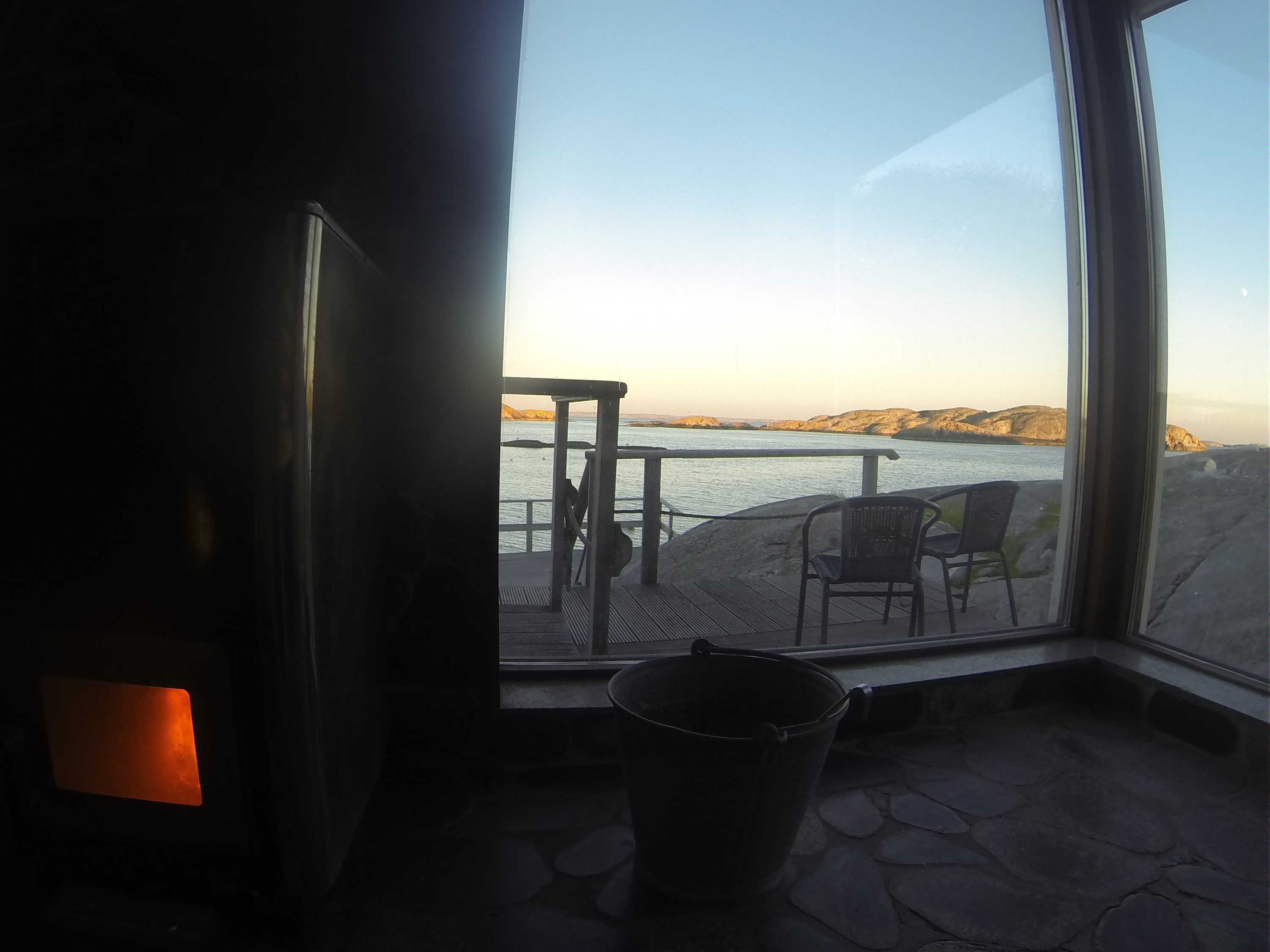 Auf den Rückweg zum Hafen komme ich dann an dem „Cafe“ vorbei. Auch das scheint mittlerweile um-/ausgebaut worden zu sein. Väderöarna Värdshus ist ganzjährig geöffnet und bietet ein Restaurant sowie sogar Übernachtungsmöglichkeiten an. Das ganze wirkt aber überhaupt nicht unpassend oder künstlich in dieser traumhaften Umgebung, sondern ist in den alten Wohnhäusern der Lotsen untergebracht. Nur WiFi gibt es auch hier nicht. 😉 Dafür heute abend aber schwedisches Meeresfrüchtebuffet. Perfekt um die 3.000NM zu feiern. Ich bin also auf einer abgelegenen Schäreninsel inklusive traumhafter Natur, mit einem urigen und dennoch perfekt ausgestatteten Hafen. Und ein erstklassiges Restaurant gibt es auch noch. „Könnte es noch besser gehen?“ geht mit beim Essen so durch den Kopf. Da fragt mich die blonde Studentenkellnerin ob ich nach dem Essen noch die Sauna benutzen möchte. SAUNA? Hier??? Klar möchte ich, das habe ich seit den Ålands nicht mehr genießen dürfen! Aber ausgerechnet hier? Zufrieden über diese Aussicht mümmel ich zu Ende. Und dann sehe ich es: Die Sauna ist nicht irgendein Holzkasten, sondern eine holzbefeuerte Steinsauna mit bodenhohen Fenstern zum Meer, dem Horizont, und den vorgelagerten Inseln raus. Und weil das alles noch nicht genug ist gibt es auch noch holzbefeuerte Whirlpools, ebenfalls mit Meerblick, auf der Terasse dazu. Bis weit nach Sonnenuntergang nutze ich beides ausgiebig, komme zur Ruhe, und zum Nachdenken: Wo bin ich hier nur gelandet…? Als ich die paar Meter zurück zum Boot gehe, hat der Horizont in der „blauen Stunde“ nach Sonnenuntergang eine absolut einmalige Farbgebung bekommen. Mehr geht nun wirklich nicht mehr…
