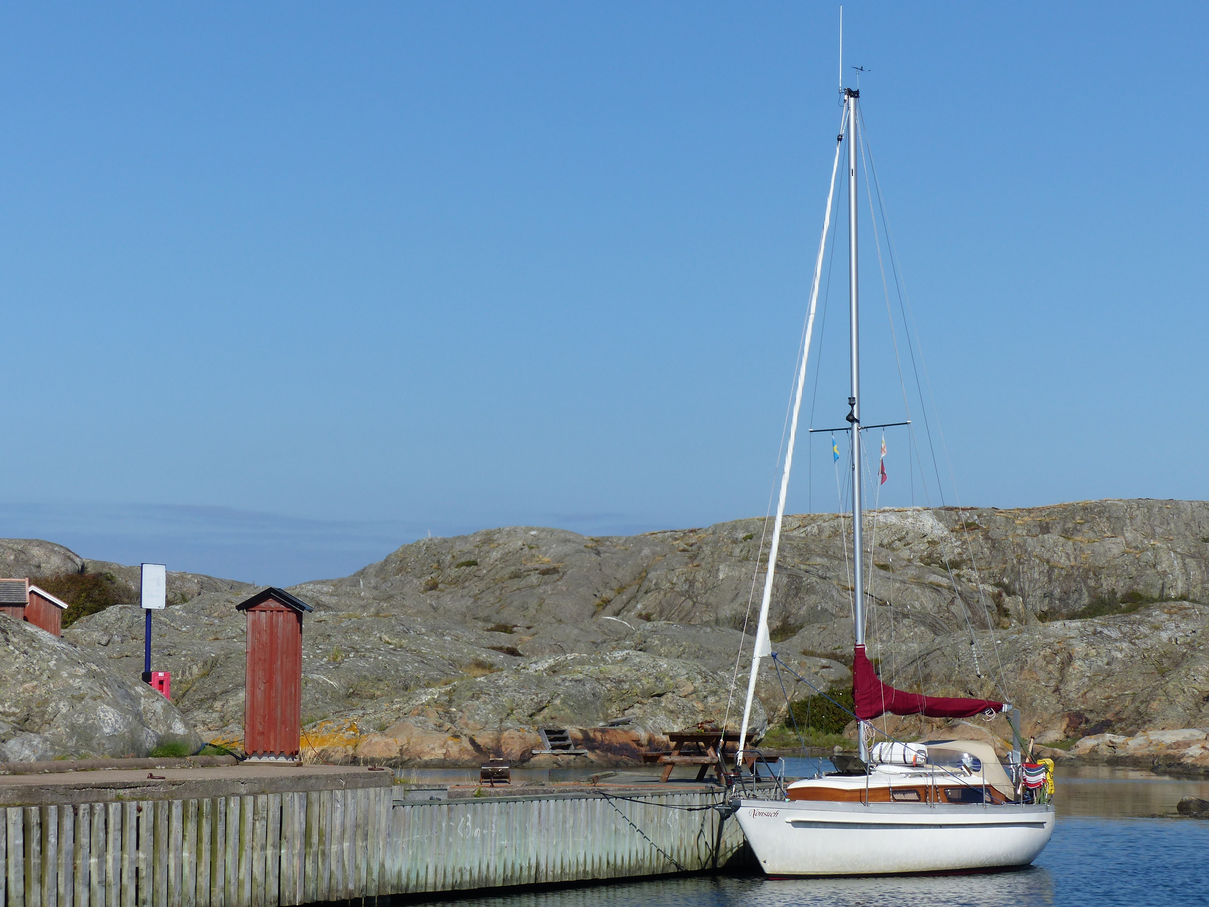 Ein Tag beginnt morgens mit einer Motorstunde durch die wunderschönen Sunde bei Orust. Es geht durch eng gewundene Fahrwasser, vorbei an der Museumswerft von Bassholmen. Kurz danach warten dann auch schon offene Gewässer. Die Sonne scheint, die Segel gehen hoch und so geht es an der Küste entlang gen Norden. Meine Wünsche werden erhört und der Wind raumt ein wenig, so dass es auf perfektestem 100° Kurs vorangeht. Keine Wolke am Himmel, knapp über 20 Grad, das Schiff macht für seine Verhältnisse flotte 5,5kn. Alle Fahrwasser hinter mir gelassen geht es außen vor den Schären nach Norden. Nichts liegt im Weg. Könnte es besser vorangehen?