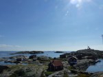 Mein erster Gang führt dann zum Lotsenausguck. Der wurde restauriert und kann heute bestiegen werden. Der Himmel ist immer noch wolkenlos, und so genieße ich einen herrlichen Blick über die Inselgruppe, die Schifffahrt im Skagerrak und den Horizont, der hier noch weiter als in Kobba Klintar auf den Ålands entfernt scheint. Denn selbst Skagen liegt schon deutlich südlicher. Das nächste Ziel ist hier ja also nicht Dänemark, sondern erst Schottland, oder Island, oder so…