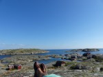 Der Hafentag hier ist also Ehrensache. Und erst beim Frühstück in der Plicht fällt mir auf, wie unglaublich klar das Wasser hier ist. So etwas habe ich die ganzen letzten 5 Monate nicht gesehen. Selbst die Insel Anholt, in der Ostsee berühmt für ihr klares Wasser, oder der Vänernsee sind nichts dagegen. Das Wasser ist so klar wie im Swimmingpool, und schimmert je nach Untergrund mal türkis, mal tiefblau wie auf dem Ozean. Absolut herrlich. Und irgendwas schwirrt dauernd über das Wasser. Erst bei näherem Hinsehen entpuppt sich dieses etwas aber nicht als Mückenschwarm, sondern als hunderte kleine Fische! Selbst die hüpfen hier durch den Hafen, als gäbs kein Morgen. Die Väderöarna erscheinen mir immer traumhafter. Es gibt unheimlich viel zu entdecken, doch verbringe ich bei bestem Sommerwetter erstmal 2 Stunden damit auf dem höchsten Gipfel der Insel auf den warmen Felsen zu sitzen und einfach nur den Blick schweifen zu lassen, denn der Blick auf die umliegenden Inseln und das Skagerrak fesselt. Und wieder kann ich von den Inseln nur in Superlativen sprechen. Abends an Bord, nach mehreren Stunden Expedition (wofür ich normalerweise viel zu faul bin), lasse ich alles sacken und überschlage mal nüchtern. Ich bin auf einer abgelegenen Schäreninsel. In traumhafter Natur. Der Hafen hat alle Serviceeinrichtungen, dazu noch brandneu. Das Wasser ist so klar wie in der Karibik. Es gibt ein Wirtshaus mit allem denkbaren Komfort und traumhafter Sauna, welches sich perfekt in die Schärenromantik und Abgeschiedenheit einfügt. Die Inseln haben diese gewisse Prise Romantik, die besondere Törnziele ausmacht. Einen schöneren Hafen kann ich mir nicht vorstellen. Es gibt bestimmt viele andere schöne. Schneller zu erreichendere. Welche mit mehr Remmidemmi und Citylife drumherum. Häfen die qua Lage etwas besonderes sind, wie z.B. Töre. Aber einen schöneren Hafen, der mehr von allem hat was ein Segler sich im Urlaub wünscht; das gibt es nicht. Ich bin zufrieden. Zufrieden, nach 3.000NM den wahrhaft schönsten Hafen der Ostsee gefunden und lieben gelernt zu haben.