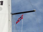 Der nächste Tag sollte also auf jeden Fall Norwegen, welches nur noch 3NM von Kostersundet entfernt liegt, bringen. Das ist gleich aus mehreren Gründen etwas besonderes für mich. Bisher habe ich es auf längeren Urlaubstörns zeitlich nie geschafft bis nach Norwegen zu kommen, obwohl mehrfach versucht. Heute soll es nun also so weit sein. Zum anderen ist Norwegen ja sowieso ein weit entferntes Traumziel für Nord- und Ostseesegler und das definitiv letzte Land auf meiner langen Reise. So wird das Überqueren der Seegrenze zum etwas besonderem. Ein letztes Mal geht eine neue Gastlandflagge nach oben. Norwegen. Das zehnte und letzte Land auf meiner Reise. Eigentlich ist es schon witzig welchen Aufriss man über das Setzen eine Gastlandflagge machen kann. Schon der große Thor Heyerdahl wusste, dass Grenzen auf dem Meer nicht existent sind. Und trotzdem gehört das Setzen der „courtesy flag“ auf jedem Törn zu den Höhepunkten. Auch wenn es zum 10ten Mal in einer Saison die dänische auf dem Wochenendtörn nach Marstal ist. Ich glaube das liegt wieder mal daran, dass es einem Törn Konturen gibt. Und gerade auf kurzen Törns schafft es eine gefühlt noch größere Distanz zum Alltag. Auf den großen Törns wie meinem jetzigen hingegen bringt er eben Eckpunkte in die Reise. Und ein Stück weit – ich denke das kann man ruhig so sagen – ist er auch eine kleine Auszeichnung an sich selbst. Hat man es doch in ein weiteres Land geschafft. Und doch eigentlich ein winzig kleiner und heutzutage eingentlich unwichtiger Brauch. Und trotzdem macht es jedes Mal aufs neue Spaß ihn zu zelebrieren. Darüber denke ich so nach während ich mich heute besonders über die kleine norwegische Flagge unter der Saling freue.
