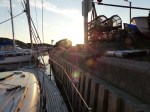 Nach Sonnenuntergang wird es nun schnell kühl. Das Leben in den Häfen erstirbt zusehends. Und das Ende der Reise rückt näher. Noch 225sm Luftlinie bis Schleimünde.