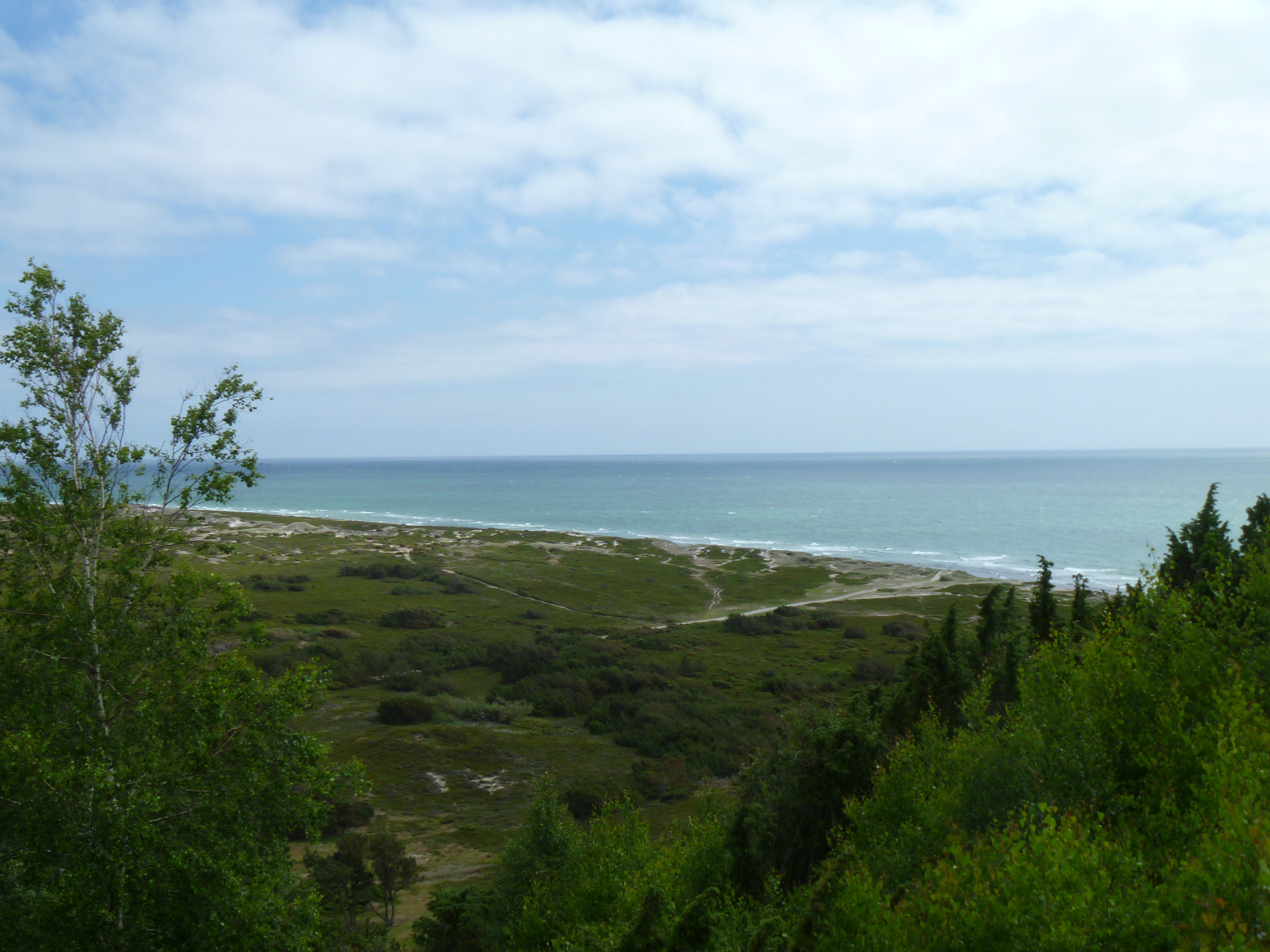 Es hilft aber alles nichts, ich bin ja nicht nach Anholt gekommen um nur auf dem Boot herumzusitzen. Also mache ich mich noch auf zu einer kleinen Inselrundfahrt, denn Anholt ist wirklich besonders. Diese kleine Insel ist wie eine Miniaturwelt mitten auf dem Wasser. Es gibt Berge, Täler, Strände, Heidefelder und Dünen, die so riesig sind, dass sie wie eine Wüste wirken. Wer mit dem Fahrrad über die Insel fährt, hat in der einen Minute das Gefühl auf Sylt herumzufahren und 5 min. später durchs ostwestfälische Bergland. Das kleine Dorf, fast ohne asphaltierte Straßen, hat ebenfalls seinen Reiz. Obwohl die Insel vom Tourismus lebt, ist hier nichts herausgeputzt. Außer der geschlossenen Bude am Hafen gibt es sogar nur ein einziges Gasthaus, Touristen dürfen ihre Autos nicht mit auf die Insel nehmen (lohnt sich wohl auch nicht) und kulturelle Sehenswürdigkeiten sind auch spärlich gesät. Ich habe ja zwar für das Internet eine dänische SIM-Karte, aber nicht mal alle dänischen Provider haben hier ein Netz aufgebaut. Wer hierher kommt sucht entweder die Natur oder Ruhe. Der Kro hat jetzt nach Saisonschluss nur 3 Stunden am Tag geöffnet. Ehrensache, dass in dieser Zeit am Sonntag fast das ganze Dorf vorbeischaut. Bei der Einrichtung würde jeder Blindenhund zwar nach Hilfe jaulen, aber diese urige Stimmung macht das wieder wett. Auf Anholt läuft die Zeit einfach in einem ganz anderen Rhythmus. Hier ist die Welt noch in Ordnung. Ich kann mir glaube ich keinen besseren Ort vorstellen, um mal so richtig den Kopf freizubekommen. Ablenkung gibt es hier fast keine. Anholt in der Nachsaison ist eine echte Offenbarung. Es scheint, als wäre das hier eine ganz andere Insel als imJuli/August.