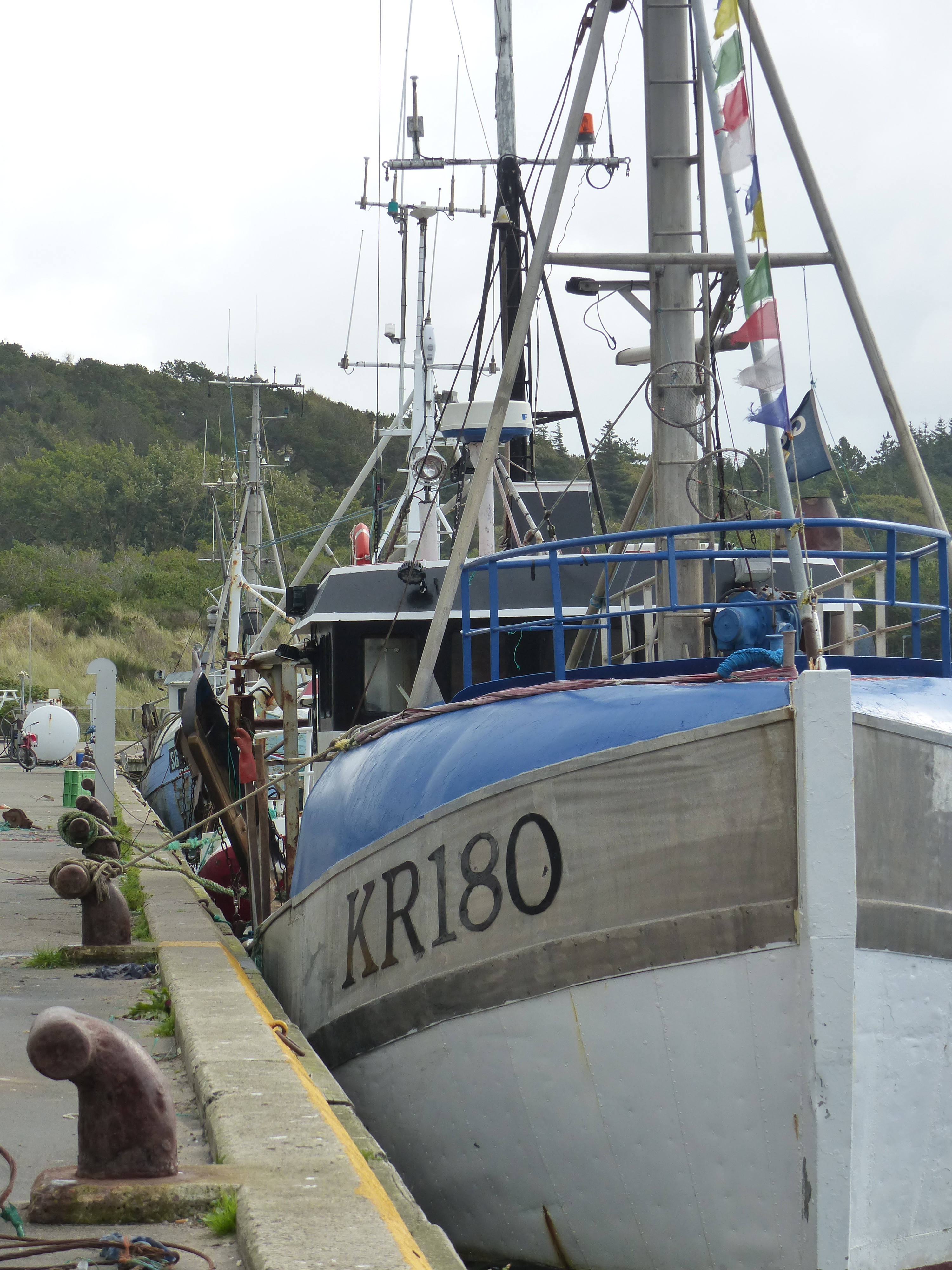 Auch Anholt, im Sommer ein absoluter Hotspot, ist bereits wie ausgestorben. Ganze 3 andere Boote sind außer mir hier. Alle liegen mal wieder längsseits. Normalerweise muss man hier wie auch in Smögen um jeden Zentimeter Steg kämpfen. Doch im Gegensatz zu Smögen, welches leer einfach nur halb so schön ist, entfaltet Anholt seinen Charme jetzt erst so richtig. Der angekündigte Sturm bläst an diesem Morgen bereits mit guten 7 Beaufort. Eine Fahrt nach Anholt wäre heute also eher schwerlich möglich. Wer jetzt noch ankommt, wird ordentlich auf links gedreht. Am Hafen laufen einige Fischer herum, die Hände tief in die Jackentaschen gestopft. Ansonsten wirkt der Hafen wie ausgestorben. Sämtliche Fischgeschäfte und Imbisse haben ihre Läden bereits verrammelt. Heißt leider auch, dass es keine Internetcoupons für das Hafen-WLAN mehr gibt. Das war aber während meines Aufenthaltes hier auch das einzige Manko. Diese Leere während des aufziehenden schlechten Wetters verleiht dem Hafen diesen Eindruck die einzige Verbindung zur Welt an einem abgelegenen Winkel selbiger zu sein. Und das ist er ja irgendwie auch. Er erinnert mich sehr an den Hafen Bensersiel in der Verfilmung von „Das Rätsel der Sandbank“. Mir gefällt diese Stimmung. Im vollbelegten Anholt des Sommer wäre das hier sicher ganz anders.