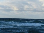 - Die Gischt fliegt an der Leeküste in die entgegengesetzte Richtung der Brandung. Witziger Anblick.