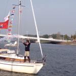 Aber bald kommt die Kappelner Klappbrücke in Sicht. Noch 10 Minuten, dann ist alles vorbei. Dann sind es noch 5, dann geht die Brücke wie ein Haustür auf. Die Musik, die Hörner, die Touristen am Kai, die gar nichts mehr verstehen. Eine einmalige Stimmung. 5 Minuten des absoluten Glücks an die ich noch in dutzenden Jahren denken werde. Auf dem Kai warten weitere Freunde und Familie. Und nun hält mich nichts mehr. Feuerwerk, Lärm, und sogar ein spontanes Bad noch vor dem Anlegen folgen.