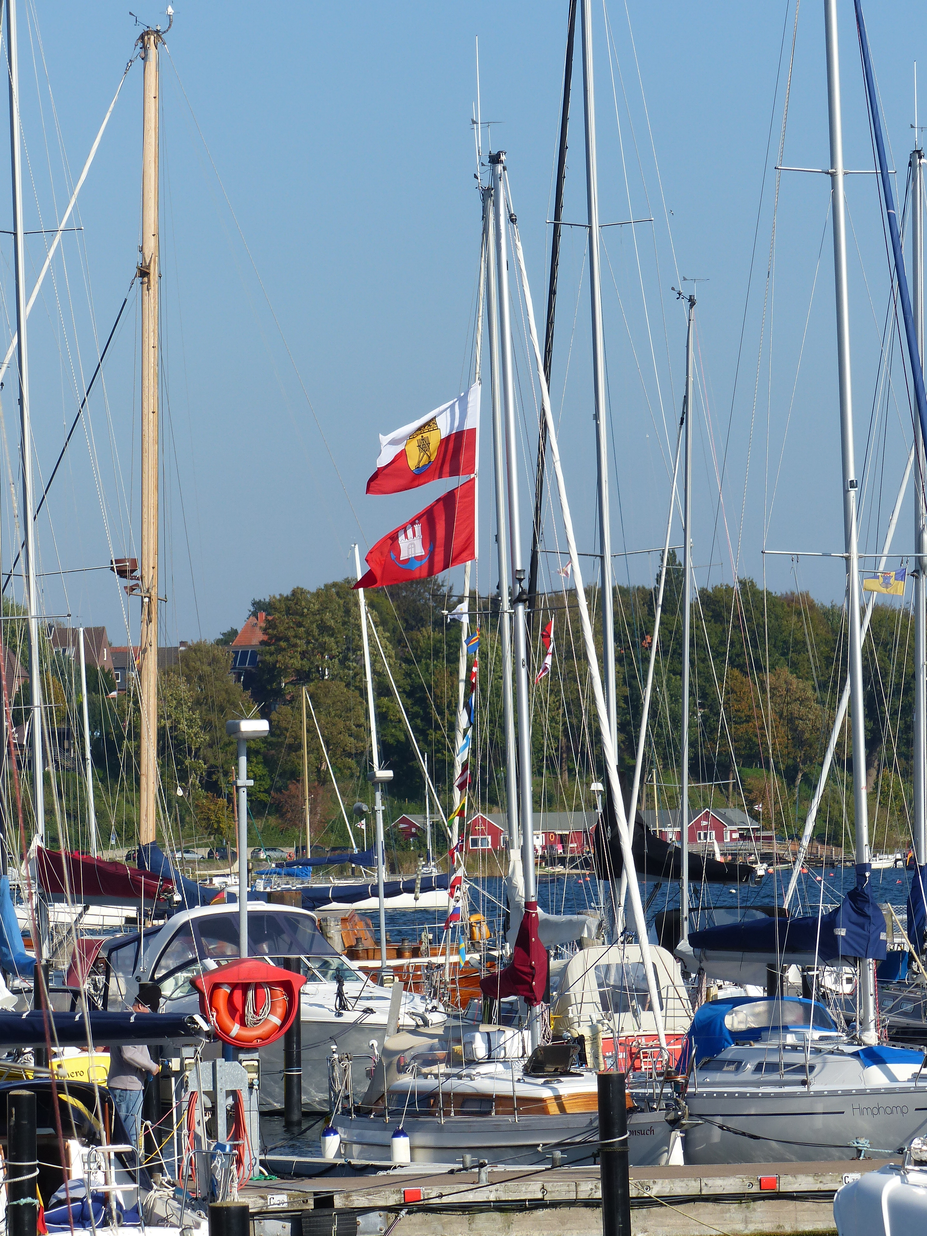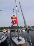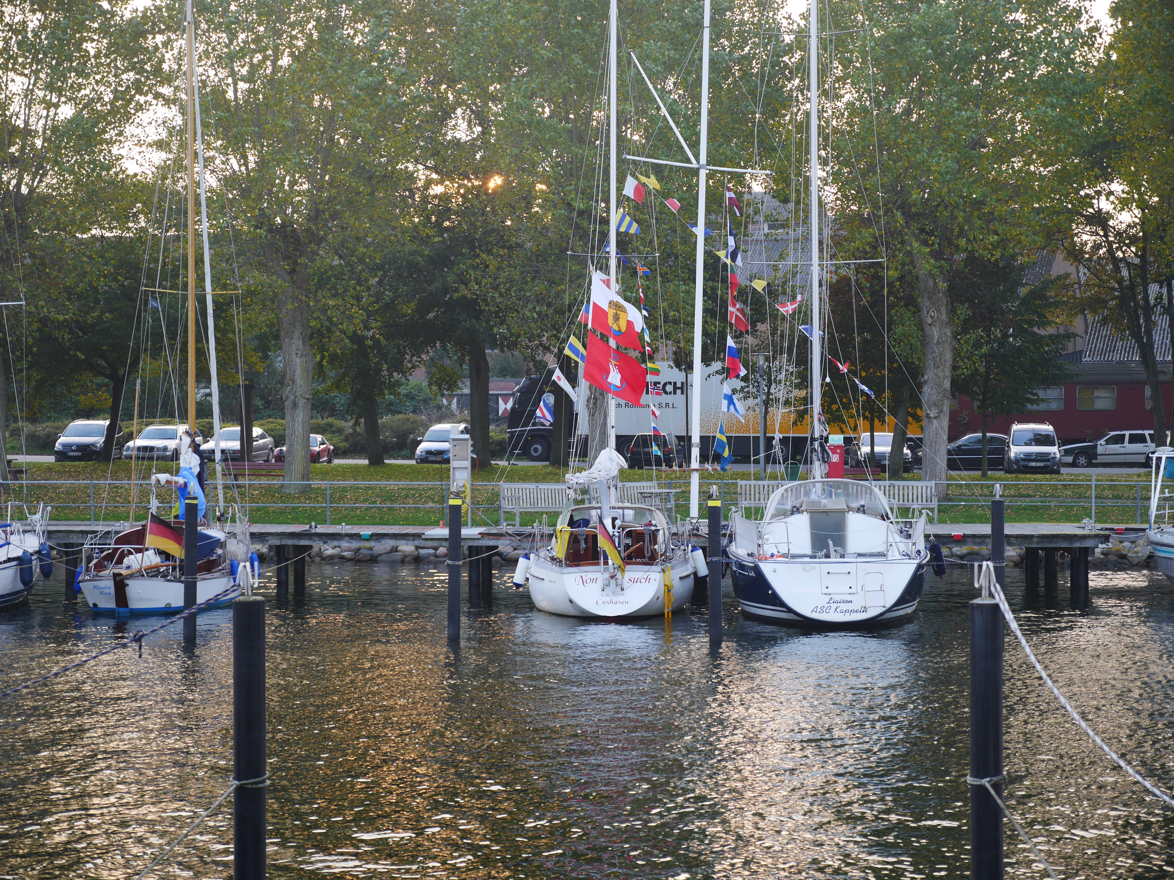 Irgendwie freue ich mich aber auch wieder, viele deutsche Segler zu sehen. Denn es wird sich nirgendwo so viel zugewunken unter Sportskameraden wie hier. Auch so eine schöne kleine Tradition. Und beim Anblick meiner Gastlandflaggen sind auch immer wieder hochgehobene Daumen, Grölen, Rufe und sogar einmal Klatschen dabei. Ich freue mich. Eigentlich war ich ja nur 6 Monate segeln und habe nichts besonderes gemacht aber doch wärmt es einem irgendwie das Herz. Auch in Eckernförde kommen schnell viele Gespräche zusammen.