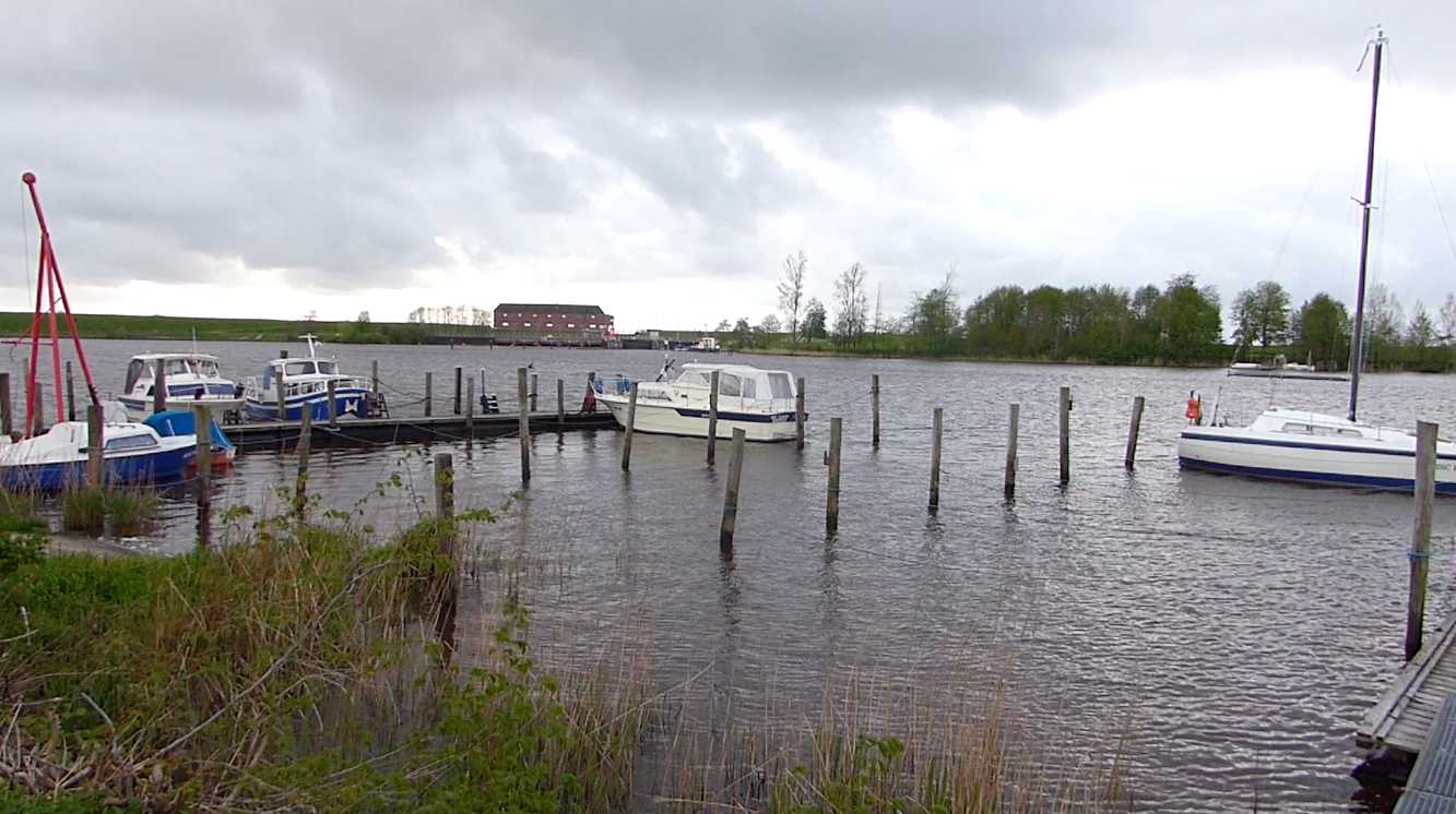 Mit jedem Meter wird die Landschaft nordseeähnlicher. Schon seit geraumer Zeit säumen kleine Sommerdeiche das Ufer. Bis zur Errichtung der Schleuse Nordfeld 1936 war dieses Gebiet, welches heute die tidefreie Binneneider bildet, nämlich von den Gezeiten durchspült. Nun wird das Fahrwasser auch noch mit den nordseetypischen Pricken markiert. Bald darauf mache ich an einem kleinen Steg fest an dem schon einige Boote liegen. Hafenmeister gibt es hier keinen. Der Hafen gehört einem kleinen Wassersportverein. Ein zufällig vorbeischauendes Mitglied kassiert von mir ganze 8€ und schließt die Duschen für mich auf. Hier gehen die Uhren noch anders als an den großen touristischen Zentren der Ostseeküste. Auch wieder ein Eindruck der sich in den nächsten Wochen noch positiv verstärken sollte.