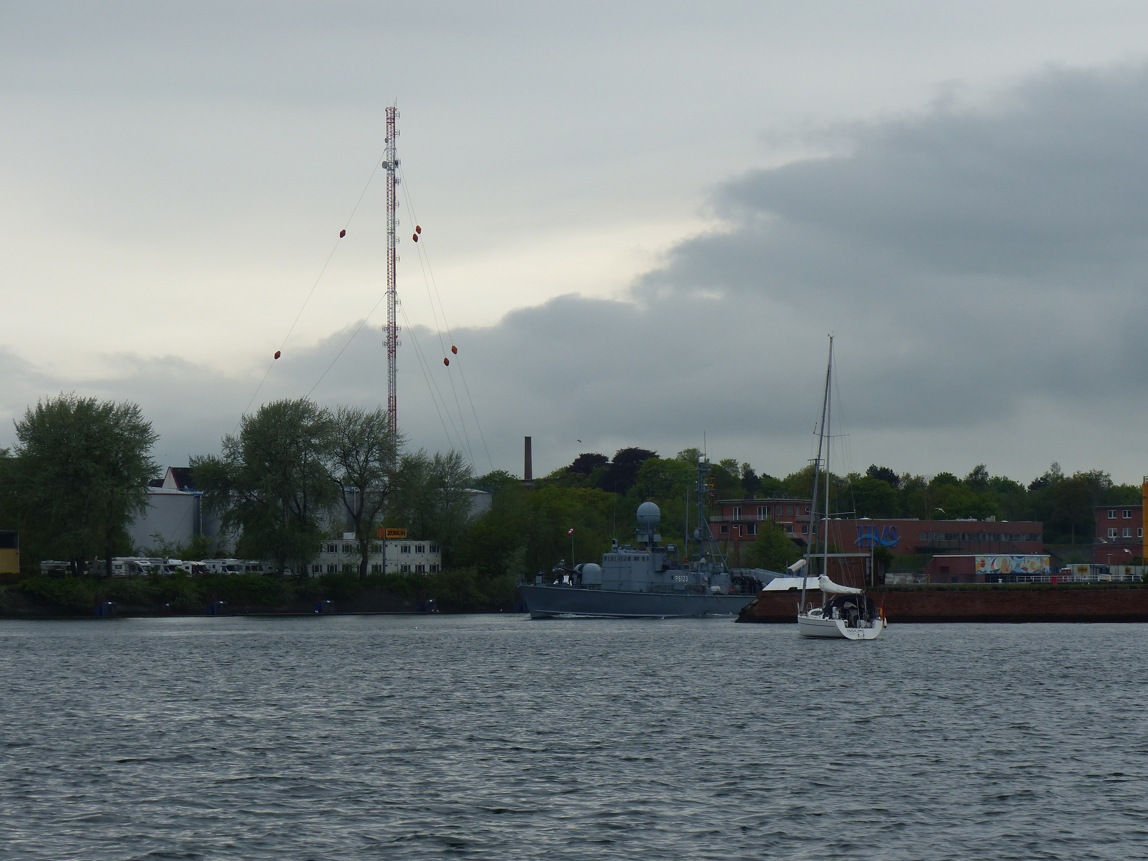 Schon im Mai geht es los. Der erste Tag der Reise ist kaum eine große Erwähnung wert. Es geht von Kappeln nach Kiel und in den Nord-Ostsee-Kanal. Das spannendste am Tag war noch die Flotte an Schiffen die vom Hamburger Hafengeburtstag am letzten Wochenende auf dem Weg zurück die Ostsee waren. Gorch Fock, Shtandart, und allerlei graues Kleingetier kamen mir entgegen. Während ich noch auf die Schleuse wartete kamen die deutschen Schnellboote aus der Schleuse gepest. Diese haben die komische Angewohnheit immer wenn ich sie treffe die Stereoanlage voll aufgerissen zu haben. Der Kapitän muss echt locker drauf sein. Das letzte Mal hatte ich das Vergnügen als ich die Elbe, ebenfalls auf dem Rückweg vom Hafengeburtstag, hinabgedümpelt bin und auf einmal Musik hörte. Noch während ich schaute ob ich vielleicht das Radio angelassen hatte, wurde ich von einem Schnellboot überholt. 3 Mann auf dem Außenfahrstand mit Sonnenbrille und es lief „Highway to the Danger Zone“ in fahrwasserausfüllender Lautstärke. Tom Cruise lässt grüßen….