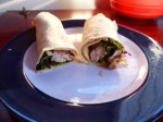 - Zu gleichen Teil Hühnerpfanne und Salat in einen Wrap geben.